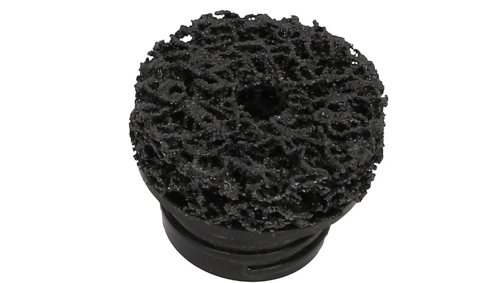 - minimale Staubentwicklung durch offenporiges Schleifmittel und topfförmigen Schleifteller