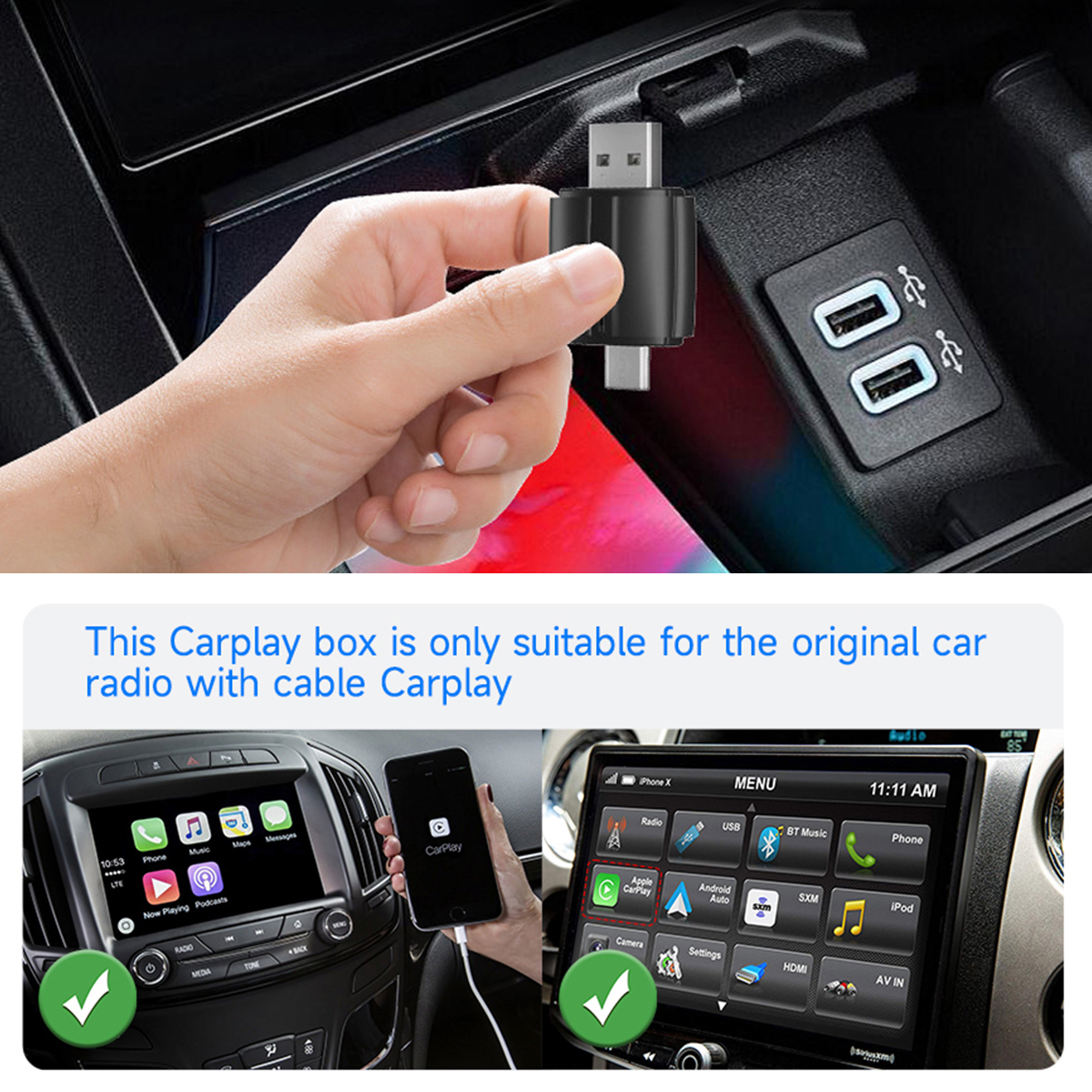 ●Please make sure your original car supports wired car-play/Android Auto(for BMW, Tesla and some models are not compatible.lf you are not sure. You can contactcustomer service to inquire.)