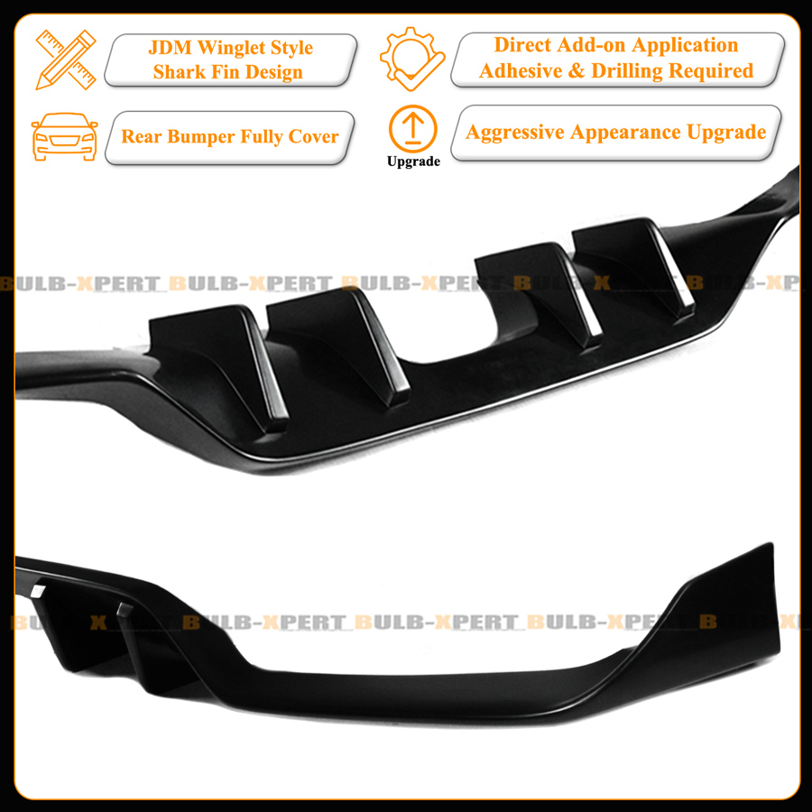 JDM R Style Shark Fin Winglet Design Rear Bumper Add-On Diffuser Lip, This is An Add-On Diffuser Made For the 10th Gen Civic Hatchback Sport/Sport Touring Model.