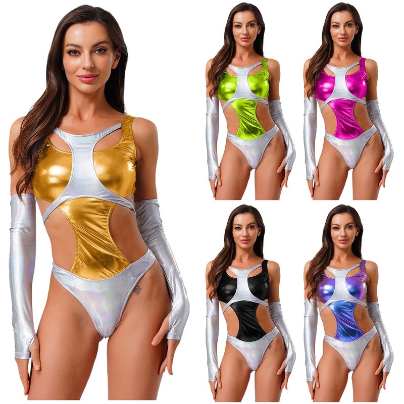 Set Include: 1Pc Women’s Bodysuit, 1 Pair of Fingerless Long Gloves