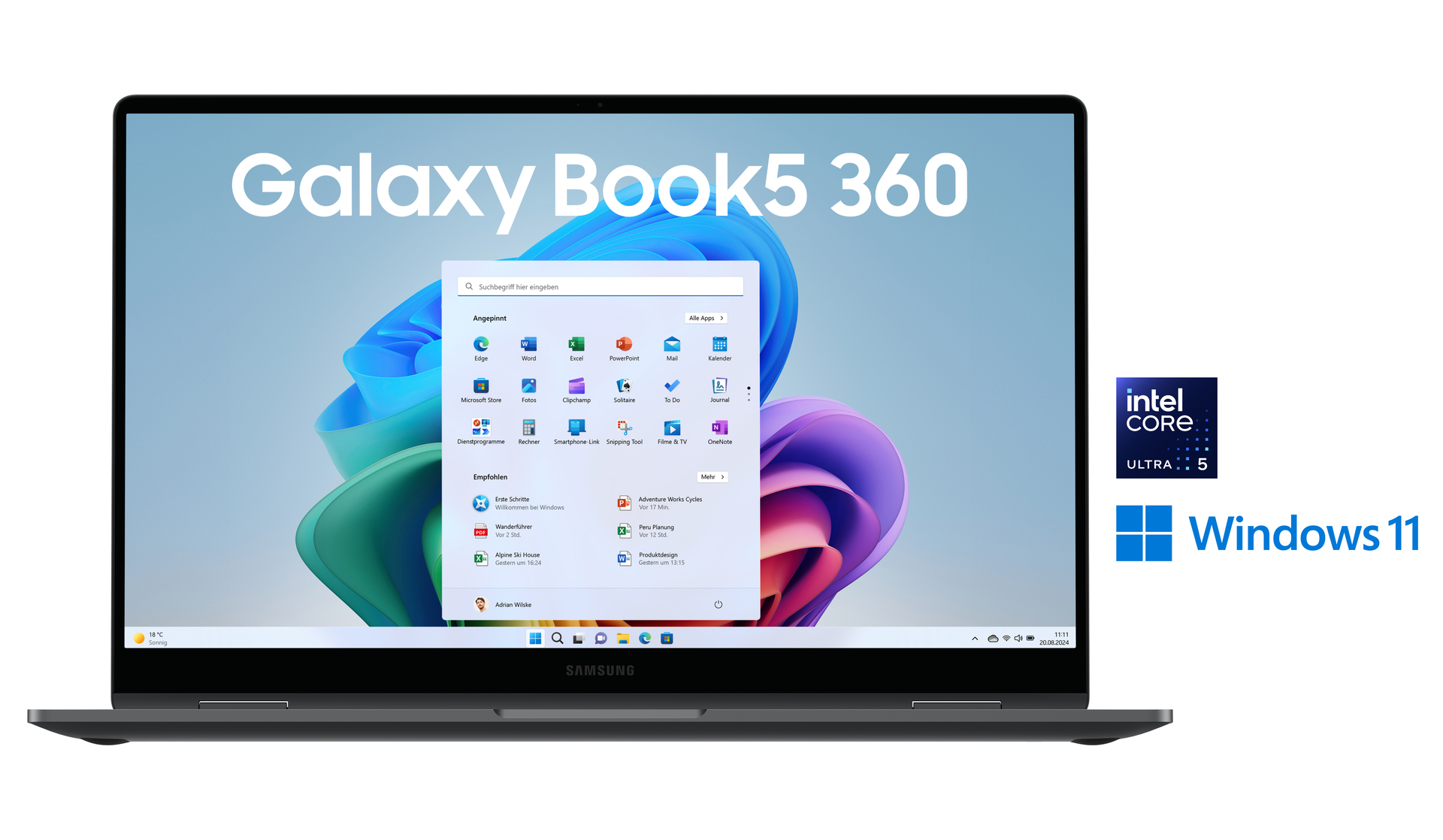 Nutze die Power von AI jetzt für deine täglichen Aufgaben: Das Galaxy Book5 360 verbindet vielfältige AI-Features mit jeder Menge Leistung und Flexibilität. Dank des umklappbaren Displays kannst du das Gerät wie ein Notebook vor dir aufstellen oder wie ein Tablet einsetzen. Das schlanke Aluminium-Gehäuse liegt dabei angenehm leicht in deiner Hand. Ob Recherche, Live-Übersetzung, Gliedern oder Zusammenfassen von Texten – deine Routineaufgaben erledigst du am besten ganz bequem mit AI-Unterstützung. Das Suchen von Informationen wird mit "AI Select" dabei so einfach wie auf dem Galaxy Smartphone. Kreise das Objekt einfach ein und lass dir auf dem großen AMOLED-Touchscreen relevante Ergebnisse anzeigen. Auch bei Sonnenschein hast du eine brillante Sicht auf deine Inhalte. Tauche tief in deine Projekte ein – und setze deine kreativen Ideen einfach und produktiv um. Der fortschrittliche Intel Core Ultra Prozessor wurde speziell für AI-Anwendungen optimiert und gibt dir entsprechenden Rückenwind. Damit du nach der Arbeit noch eine Runde entspannt streamen oder gamen kannst, hält der starke Akku stundenlang für dich durch. Auch deine kompatiblen Galaxy Geräte sind nur einen Klick entfernt. Verbinde sie mit deinem Galaxy Book5 360, um Daten oder Funktionen nahtlos nutzen zu können und nutze mit "Storage Share" den Speicher geräteübergreifend.