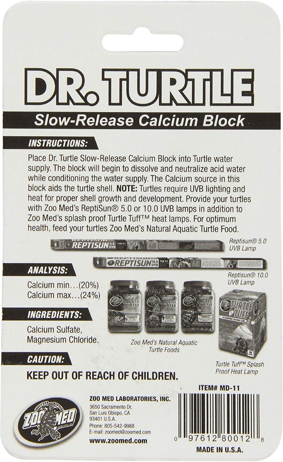 Dr. Turtle is a slow-release calcium block that conditions water while providing a calcium supplement to promote healthy shell growth for aquatic turtles. To use, simply place the Dr. Turtle Block in your turtles water supply.