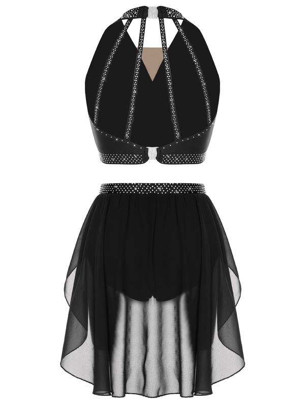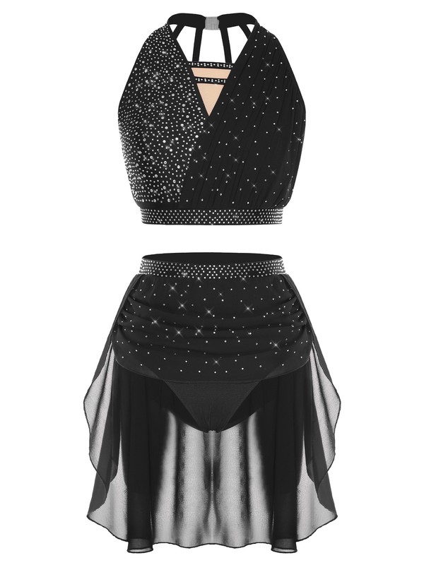 Sparkly rhinestones adorn the outfit, bringing a glamorous and eye-catching element, perfect for adding a touch of sparkle to any performance.