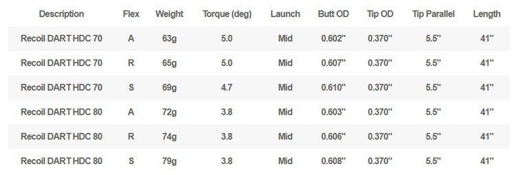 The Recoil® DART HDC has been designed after years of research and testing to precisely optimize shaft hoop stiffness in the critical areas of the golf shaft. High Density Carbon is low resin / high density carbon fiber that maximizes the performance benefits of the carbon fiber and achieves the best possible feel.
