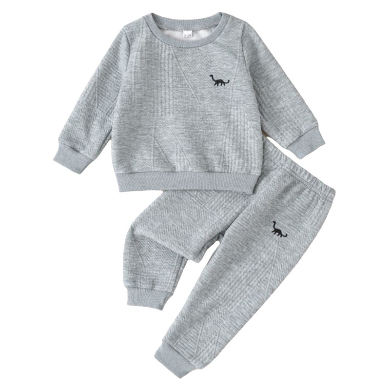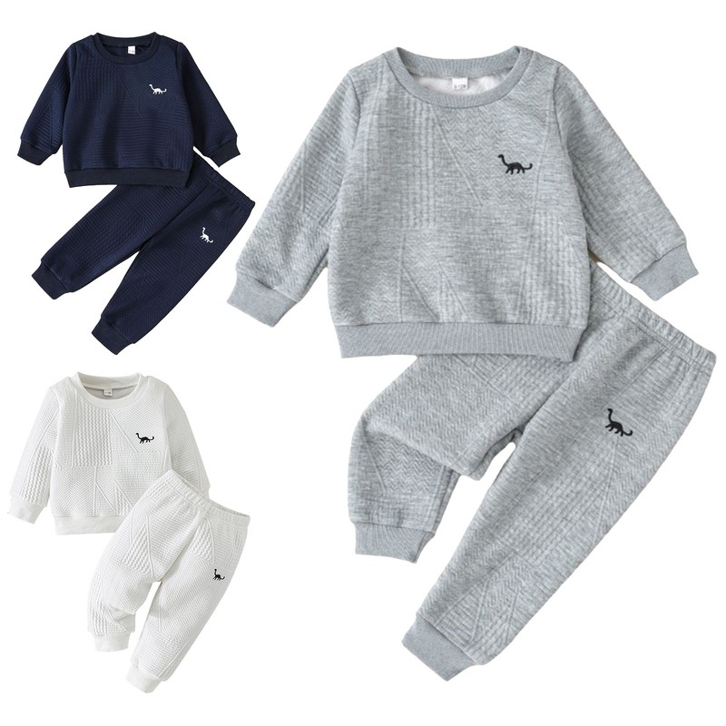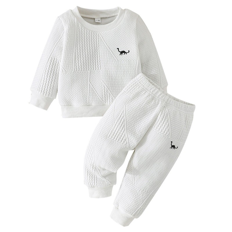 The dinosaur embroidery adds a trendy and cute element, making the set stand out and appealing to little boys, following the current popular animal-themed fashion trend.