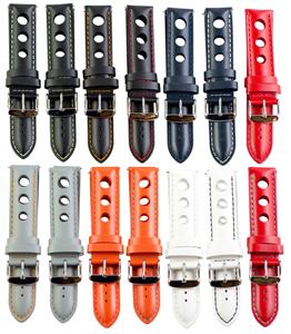 For Sale is our Clockwork Synergy GENUINE SMOOTH LEATHER RALLY 3-Hole Replacement Interchangeable watch band. Give your Watch the Class it deserves. One of the finest Watch Bands we have ever made. These bands will Perfectly fit your IWC Watch or any other Watch requiring a standard flat End Watch Band. 100% Genuine Leather. Top leather has a Genuine SMOOTH Leather finish. Backing is Genuine Sweat Resistant Leather Lining. Durable but comfortable! These are 100% Genuine leather, so you will have to break them in to mold to your wrist. (takes a few days) Length - 18mm-24mm 120/75 & 26mm is 150/75. 5.5mm THICK at its thickest point.