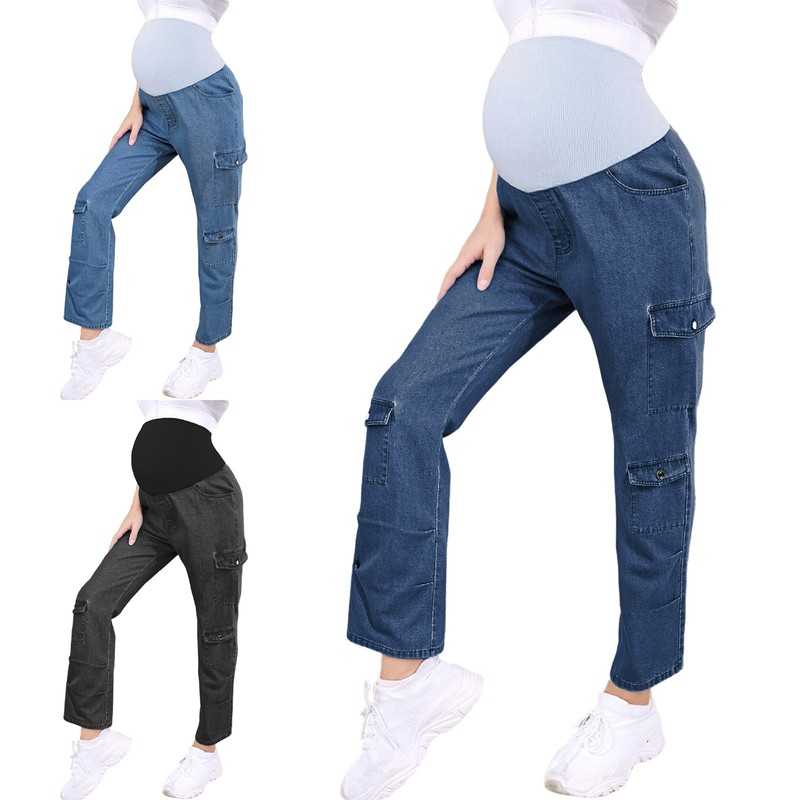 Mutterschaft Jeans Gerades Bein Schwangerschaftshosen Mehrere Taschen Denim