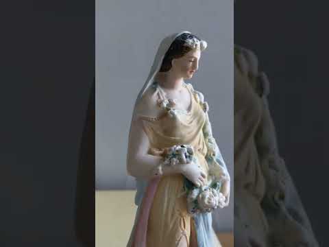 Incredible details with lifelike face, flowing drape dress and raised relief flowers, bearing Limoges numbered mark under glaze.