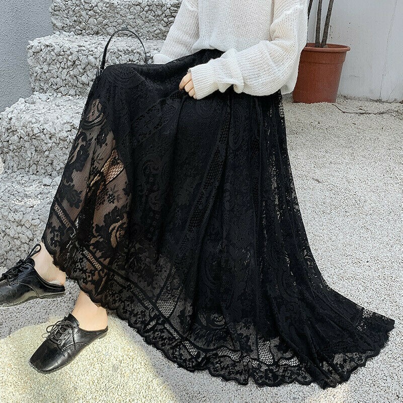 Lady Modal Long Maxi Skirt Asymmetric Swing High Waist Casual Ruffles Loose Sexy