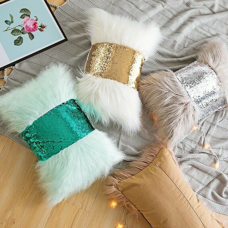 Plush Cushion Cover Sequin Fluffy Sofa Pillow Case Car Seat Home Decoration