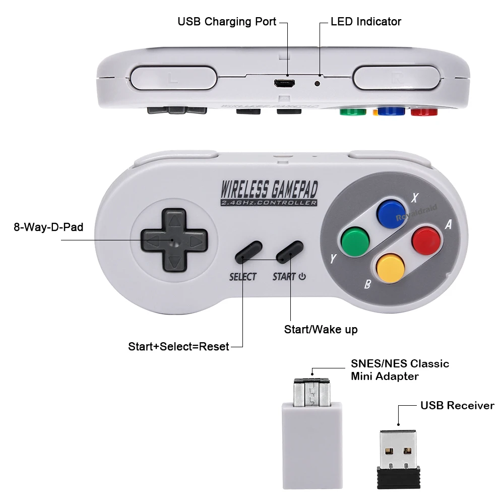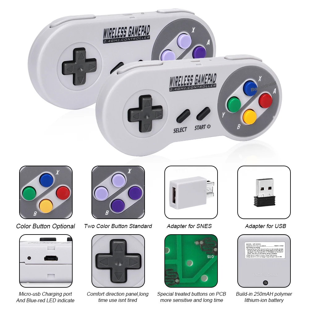 Colorful 2 Reciever Wireless 2.4G Game Controller Joypad Joystick Gamepad for SNES Mini PC Windows for Switch OLED & NS Switch
