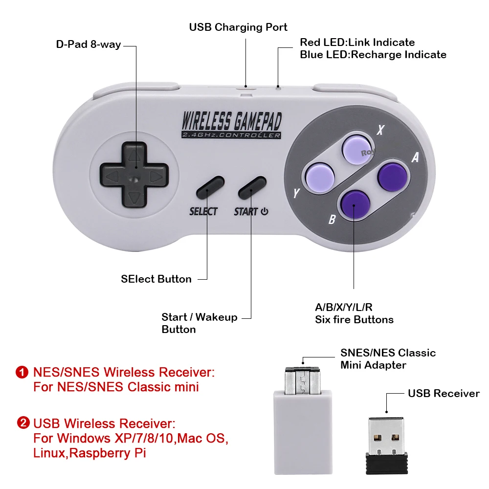 if you want to connect windows XP, the way is below: uninstalled for xbox 360 controller driver that was installed earlier. After that, you need to remove the device in the task manager and restart the computer. Next, you need to insert the transmitter and SNES controller will determine itself. if you want to connect with Switch/OLED Console : you can by USB receiver to TV Dock , also can by USB receiver to an OTG adapter (customer need prepare in advance , not included ) .