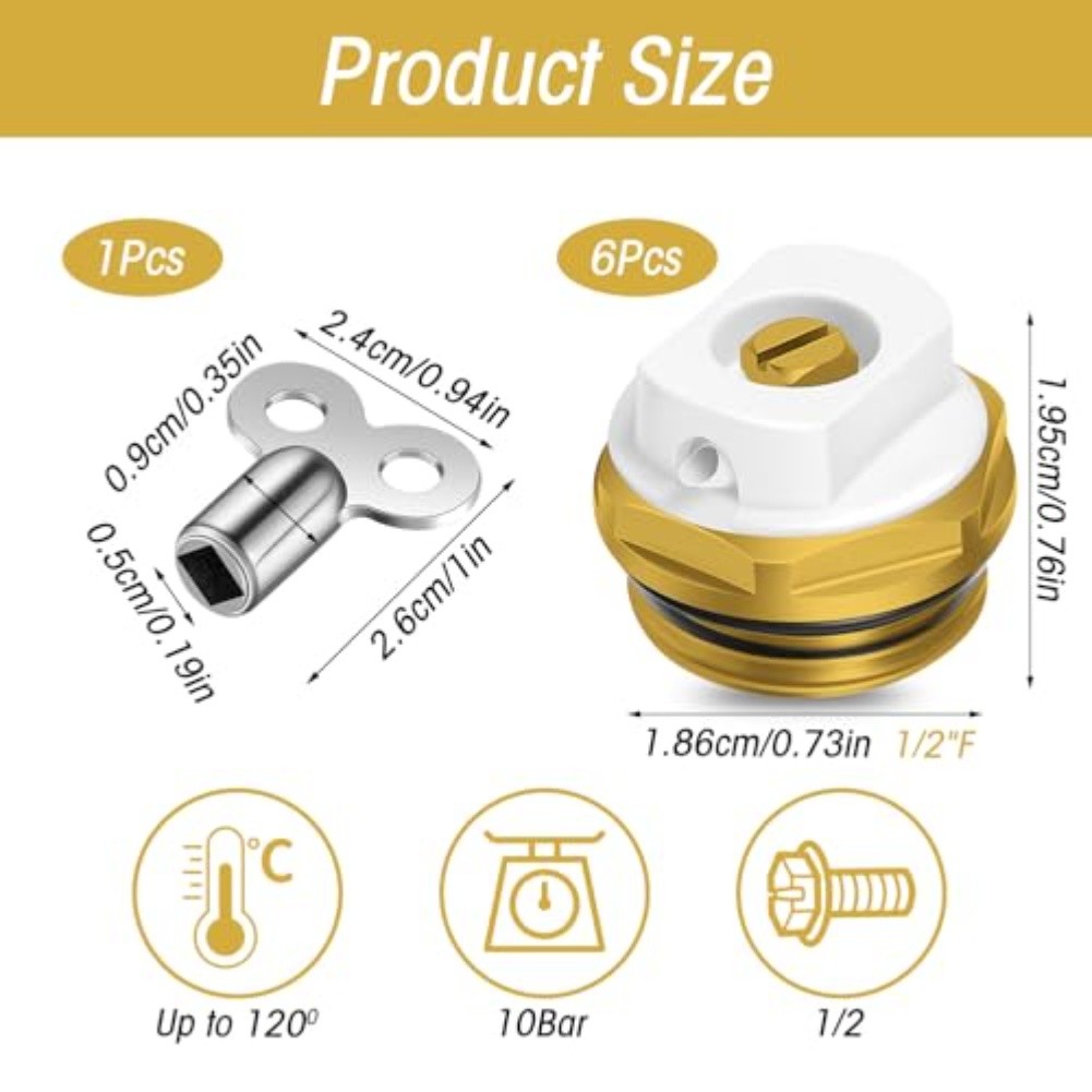 *Comprehensive Air Vent Set: This package includes 6 radiator air vents and 1 dedicated wrench, make sure you have all necessary parts to maintain efficient heating and prevent leaks during cold seasons.