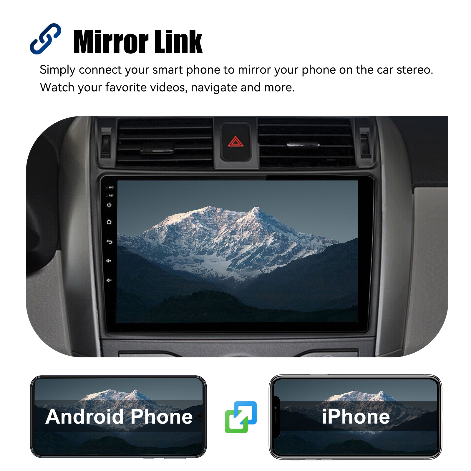 MIRROR LINK & APPLE CARPLAY & ANDROID AUTO: With this car radio, you can experience the amazing Mirror Link function, compatible with iOS and Android phones. You can mirror your smartphone screen to the car radio using apps like Google Maps, Spotify, Youtube, etc. Replace your cell phone with the car screen and turn your vehicle into a smart platform. Immerse yourself in a seamless and user-friendly infotainment experience with Apple CarPlay & Android Auto. Connect your iPhone to Apple CarPlay or your Android smartphone to Android Auto and securely access calls, texts, navigation, music and more. With intuitive operation via the touchscreen or voice control, you have all functions at your fingertips while you remain safely at the wheel. Use your favorite apps and stay connected at all times while keeping your eyes on the road. Turn your vehicle into an extended hub for your mobile devices and experience a new dimension in infotainment.