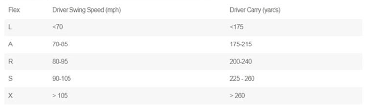 | Flex | Driver Swing Speed (mph) | Driver Carry (yards) |