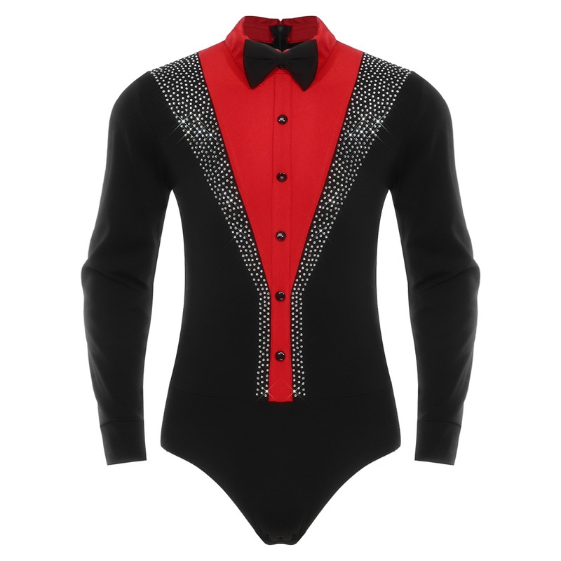 Der Body lässt sich öffnen. Das Design mit Schrittausschnitt bietet Komfort und Funktionalität und eignet sich für Herren-Eiskunstlauf, Lateinamerikanische Tänze, Tanzwettbewerbe, Bühnenauftritte und andere Tanzveranstaltungen.