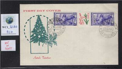 Rare FDC of a rare set issued to celebrate the 1953 Christimas holidays in Trieste. Not listed in the Scott catalogue and in the Sassone catalogue. Only in the Italian Specialized Catalogue.