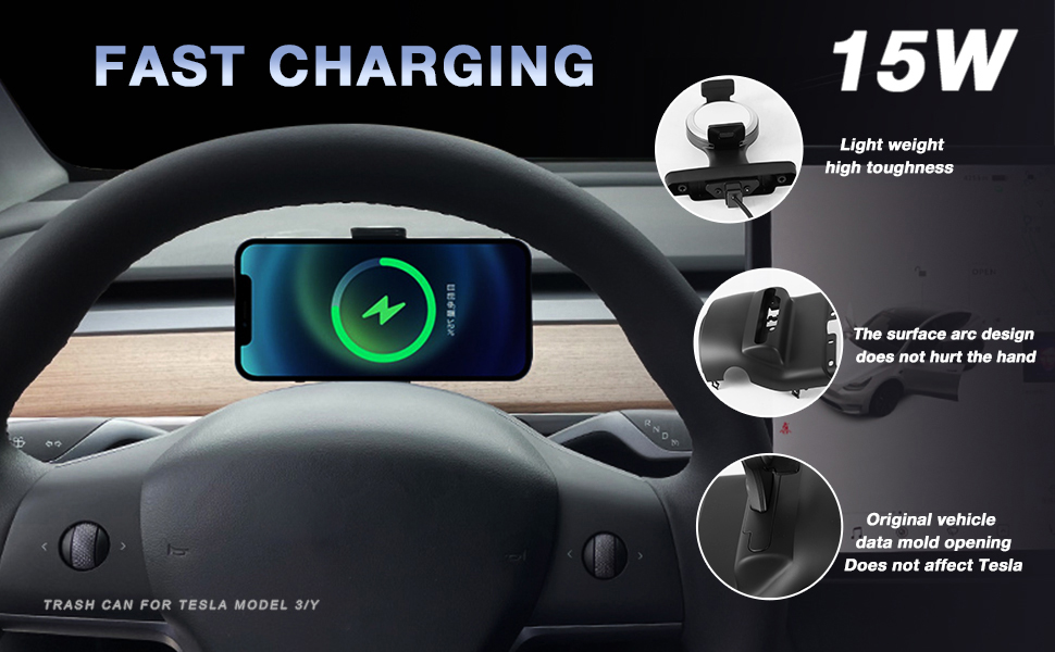 【Custom Model 3/Y Steering Mount】Wireless Car Charger For Tesla Model3/Y With A Specially Designed Mount That Fits On Top Of The Steering Position
