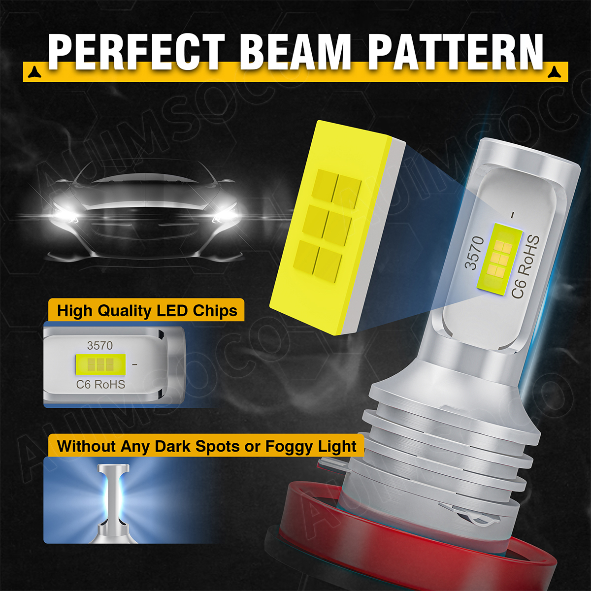 Optimized Beam Pattern: This Bulbs has 1:1 halogen filament design, apply the same length and position as the halogen bulb. It focuses light to match the standard beam pattern and does not blind oncoming traffic, no dark spots or foggy light.