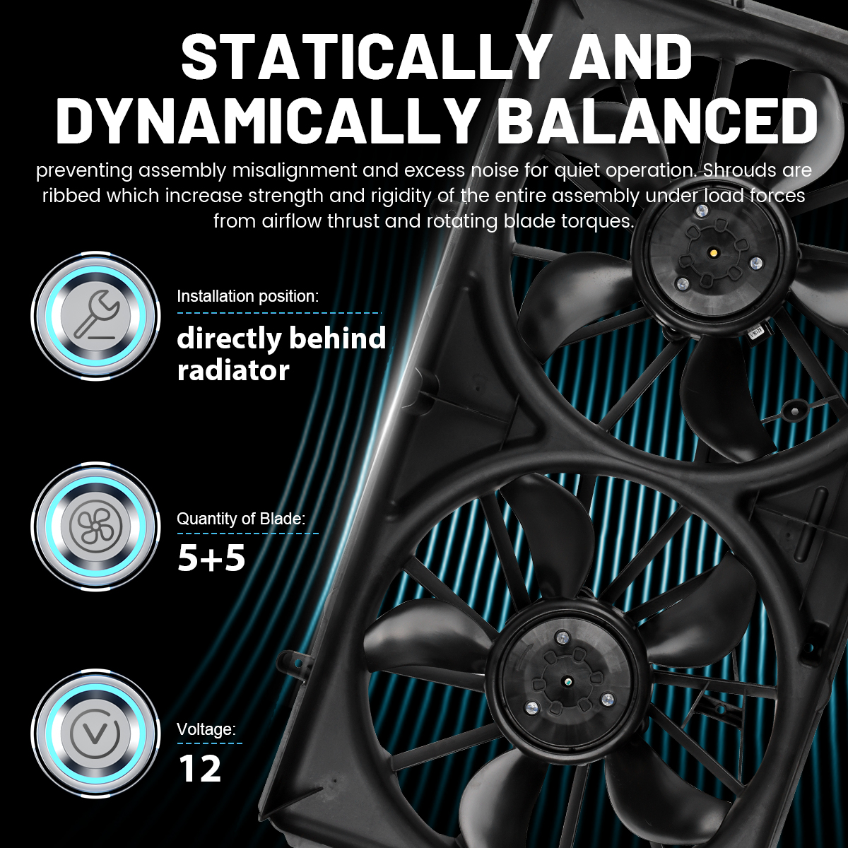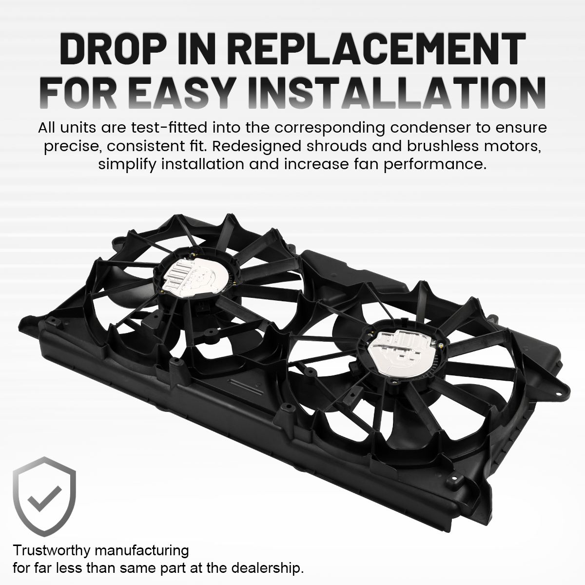 1.Drop in replacement for easy installation.All units are test-fitted into the corresponding condenser to ensure precise, consistent fit. Redesigned shrouds and brushless motors, simplify installation and increase fan performance.
