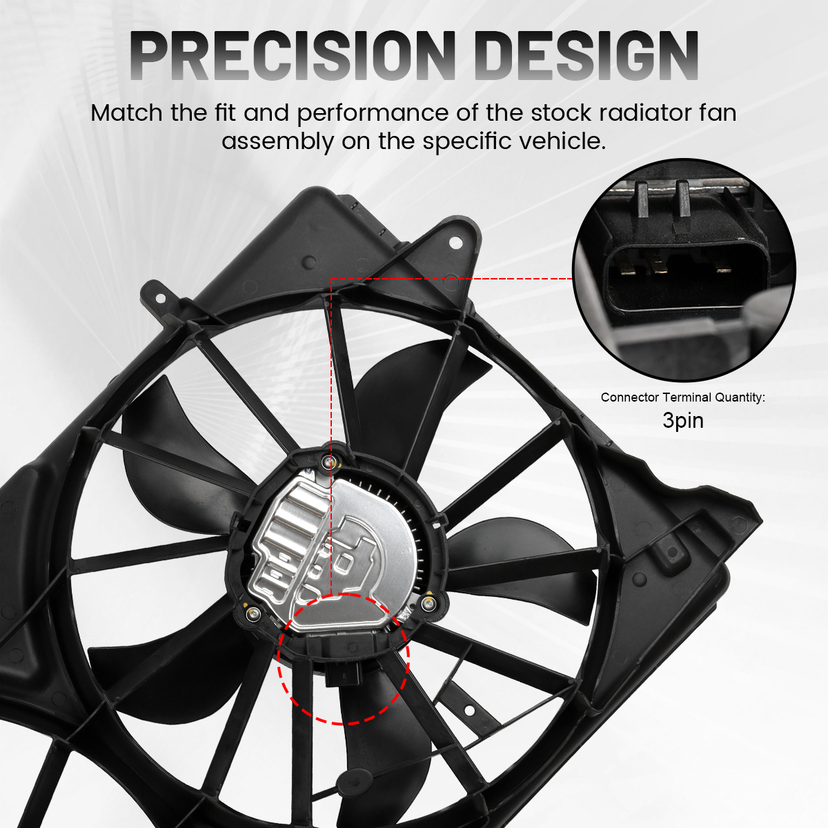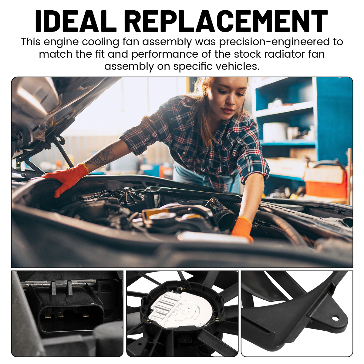 2.Ideal replacement.This engine cooling fan assembly was precision-engineered to match the fit and performance of the stock radiator fan assembly on specific vehicles.