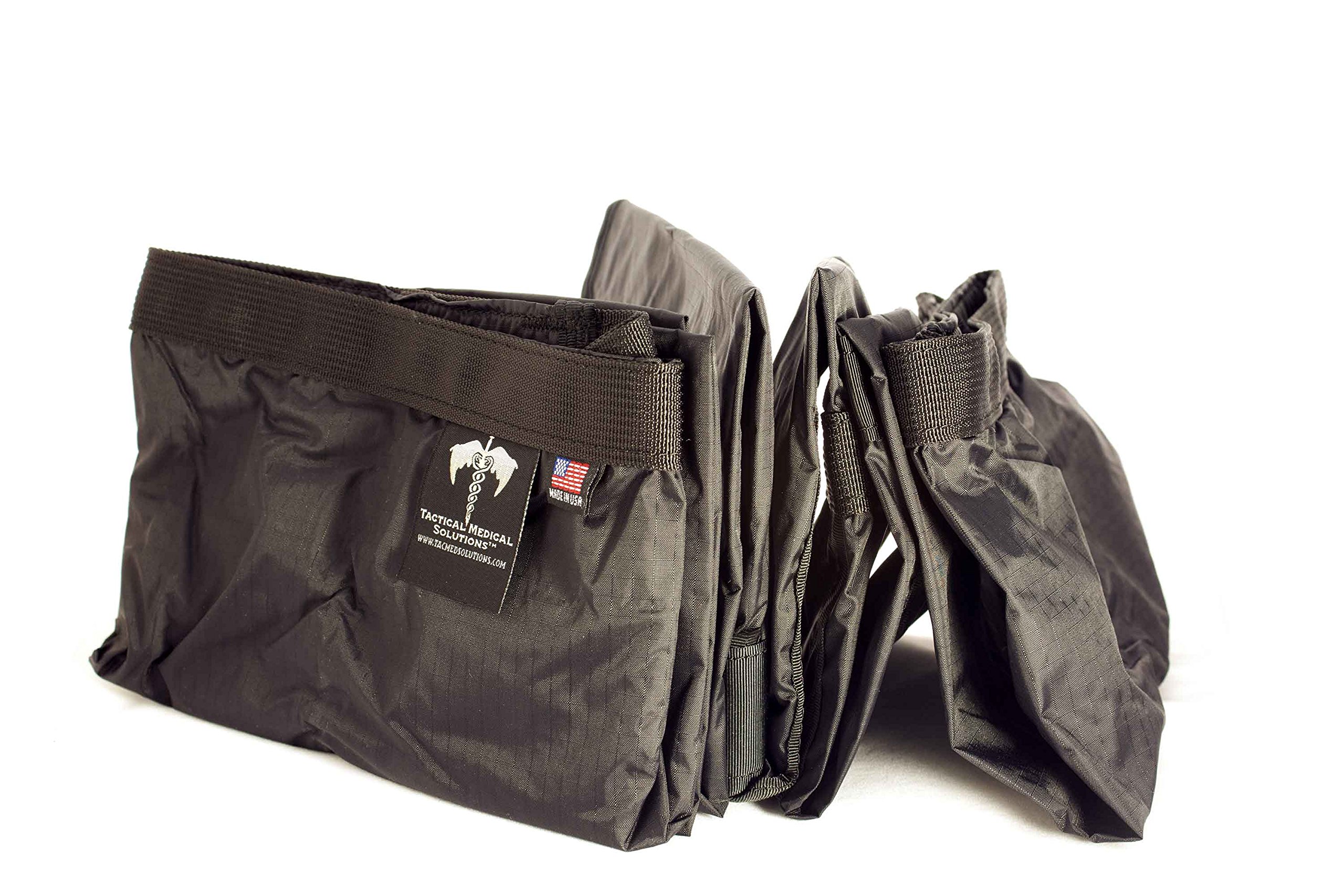 Not only does the litter function as a poles litter, it also functions as a casualty equipment bag after the casualty has been loaded on a standard litter. The bag can hold an individual’s combat equipment or sensitive items to minimize the risk of loss during the casualty evacuation process.