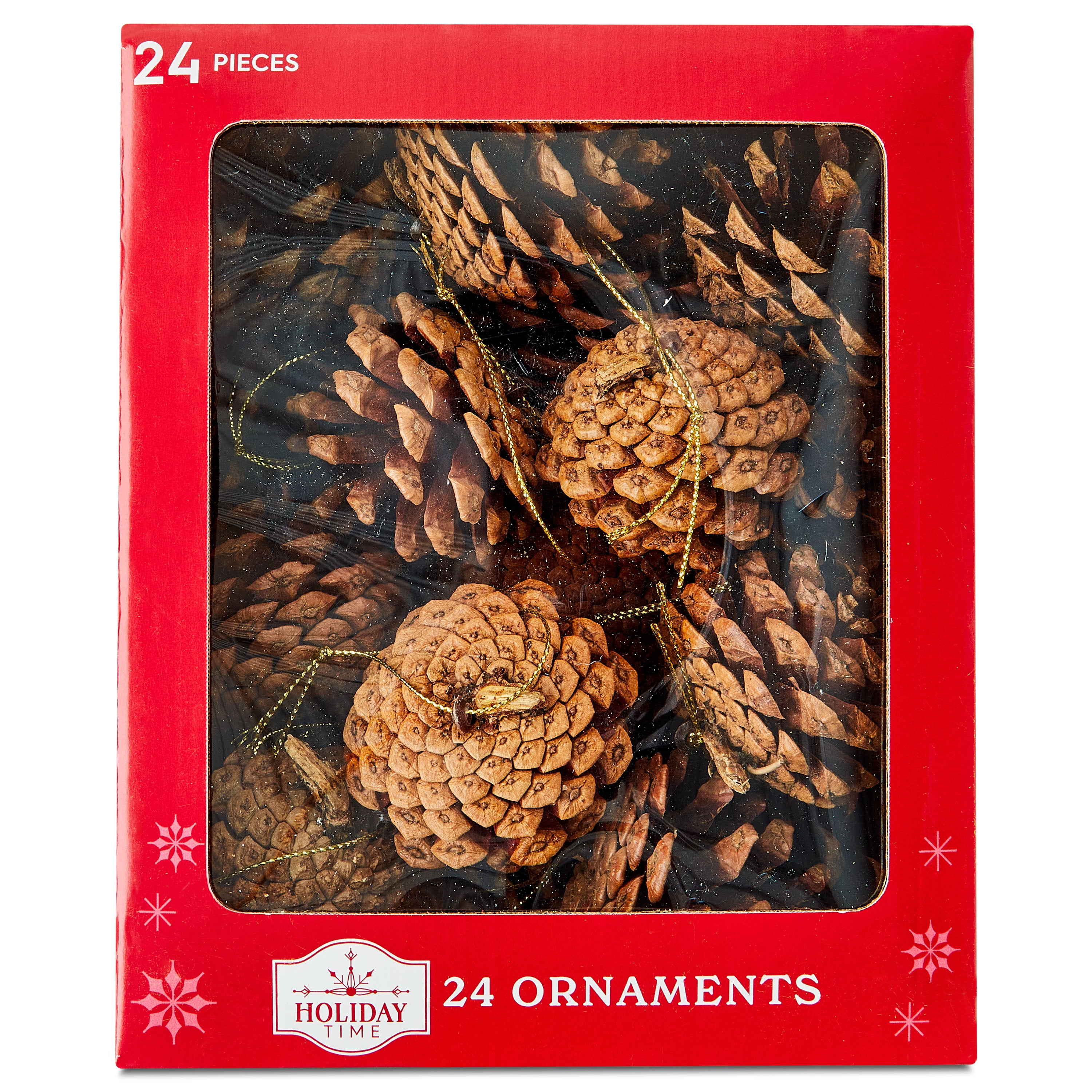 - Holiday Time Natural Brown Pinecone Christmas Ornaments, Assorted Sizes, 24 Count