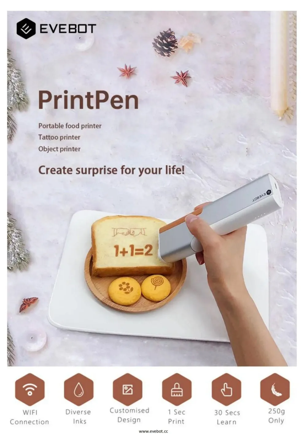 Handheld Food Printer Edible Inkjet Printer for Cake Baking and Bread Patterns
