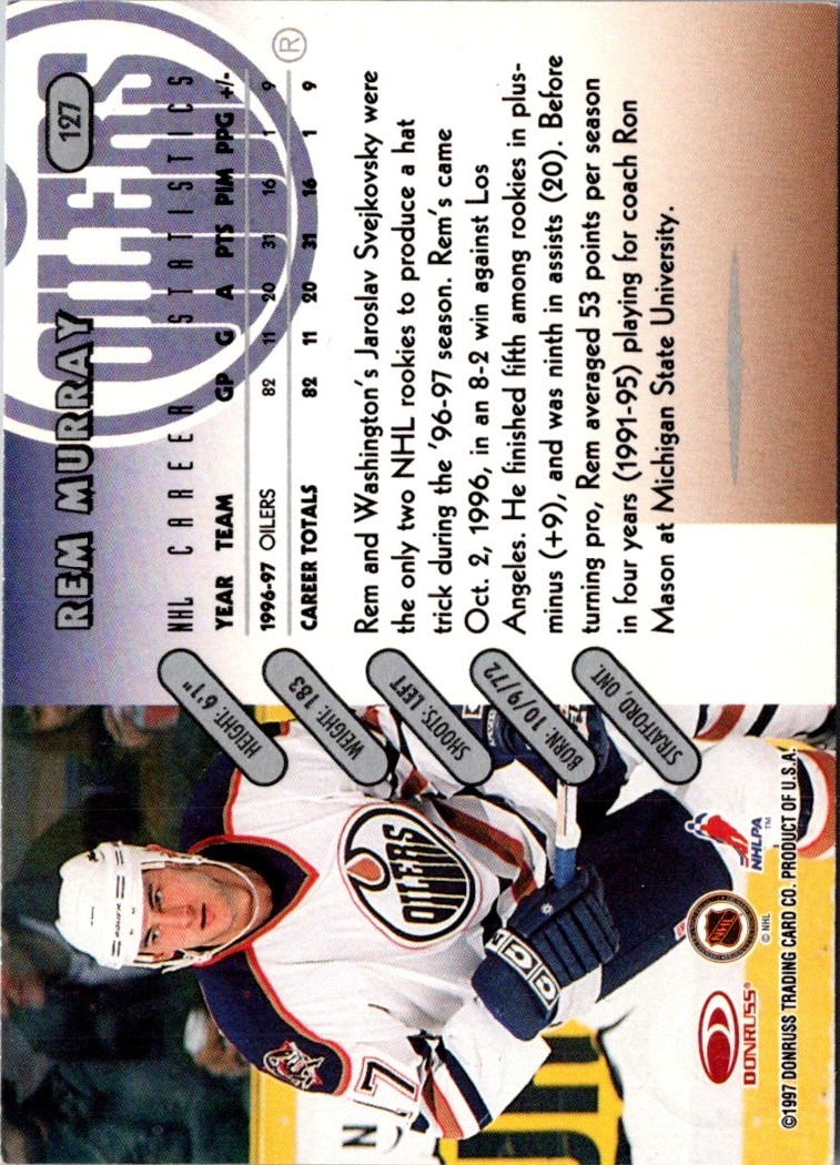 1997 Donruss Rem Murray 127 Edmonton Oilers Hockey Card