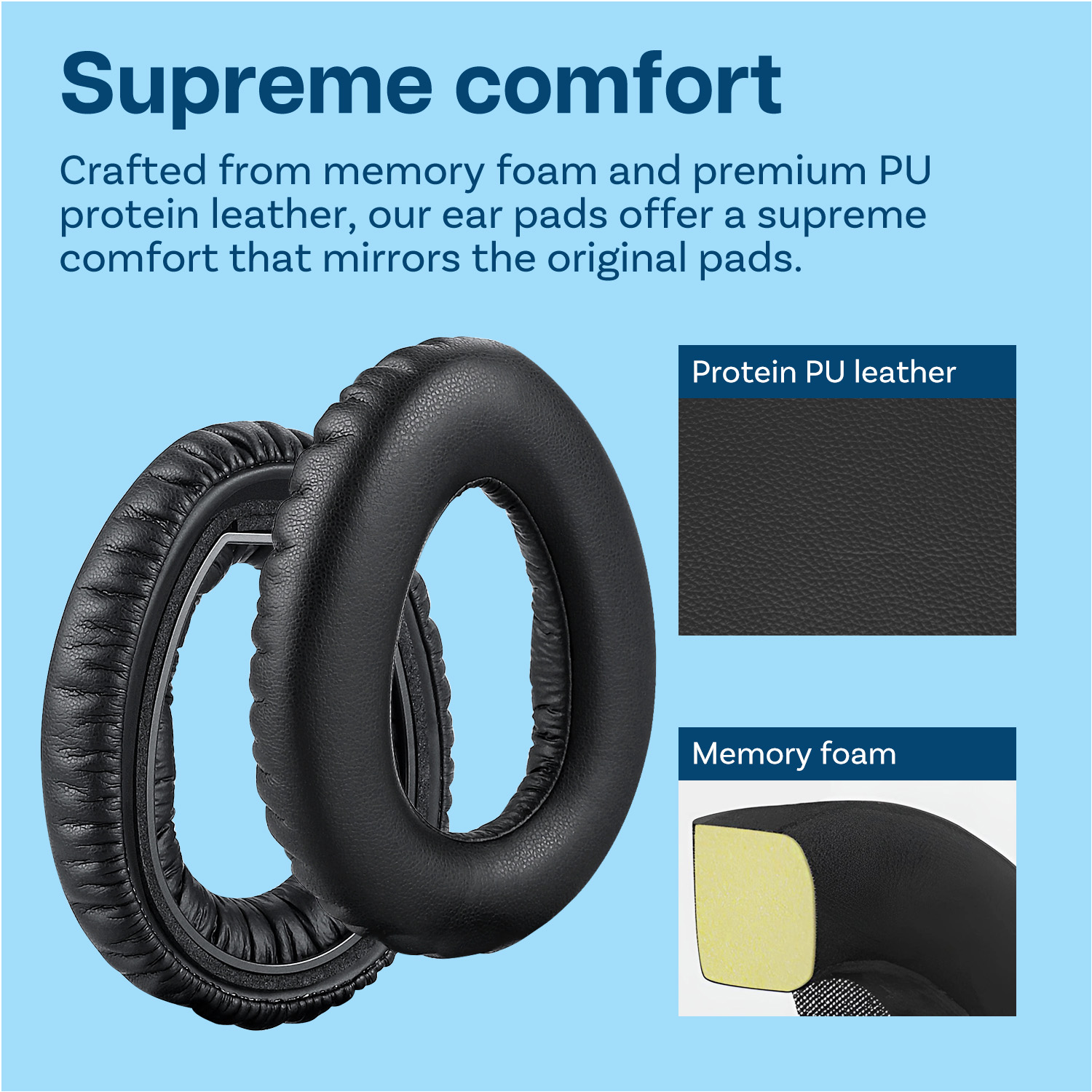 Höchster Komfort - Unsere Ohrpolster bestehen aus hochwertigem Schaumstoff und erstklassigem Protein PU, um Ihnen höchsten Komfort zu bieten, der dem der Originalpolster entspricht. Genießen Sie den ganzen Tag lang Musik, ohne sich Gedanken über Unbehagen, Schwellungen oder Schmerzen machen zu müssen.