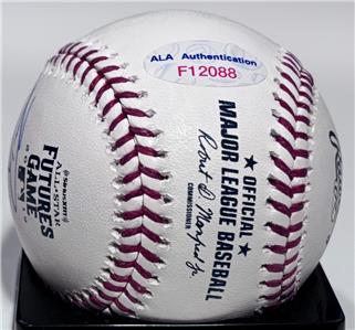 Signature is hand-signed on an Official Rawlings 2015 Futures Game Baseball.