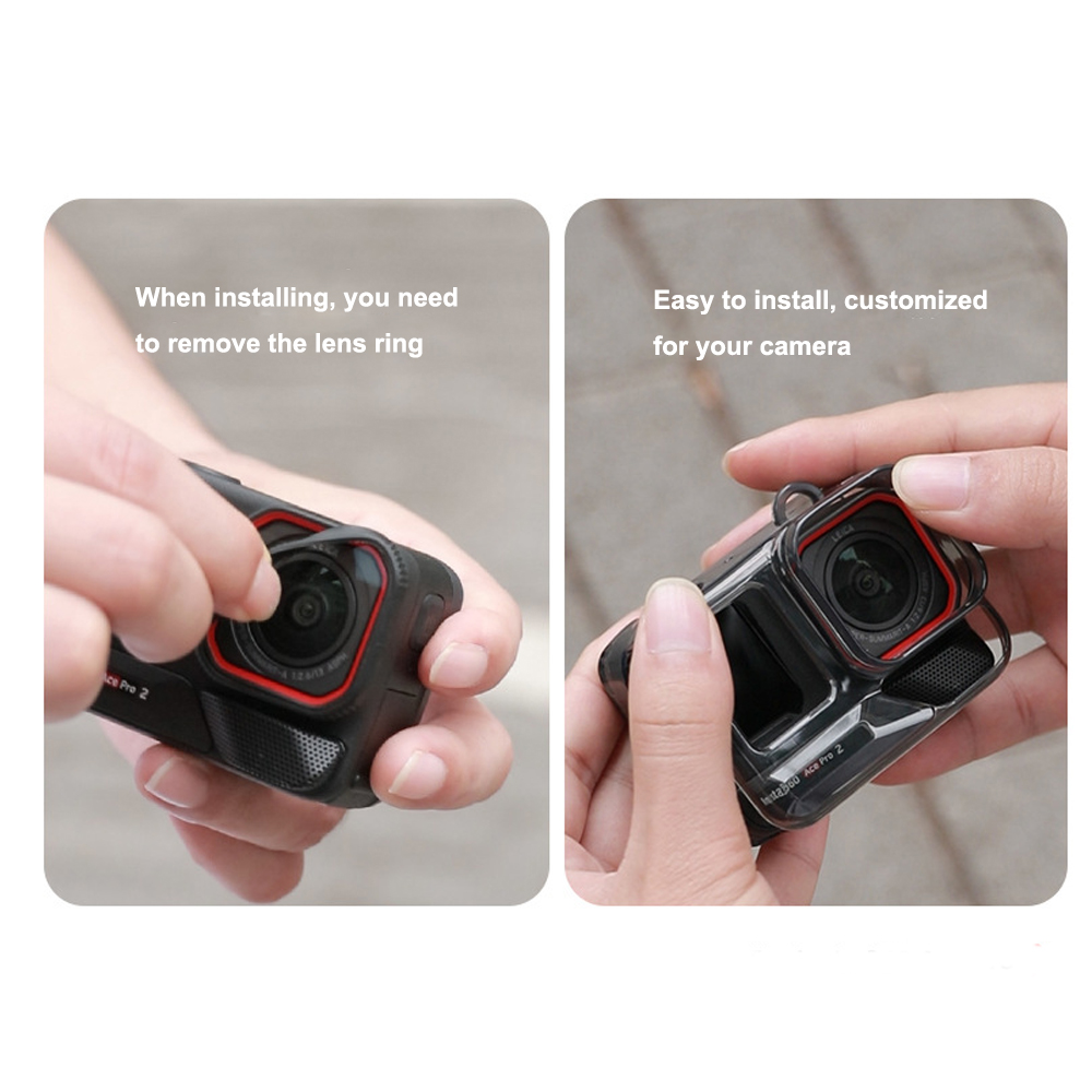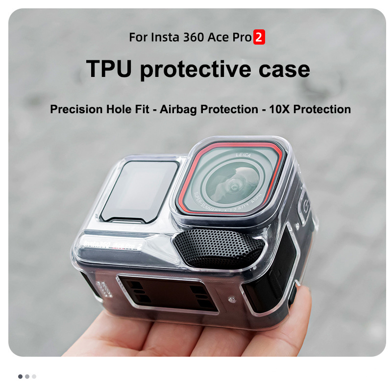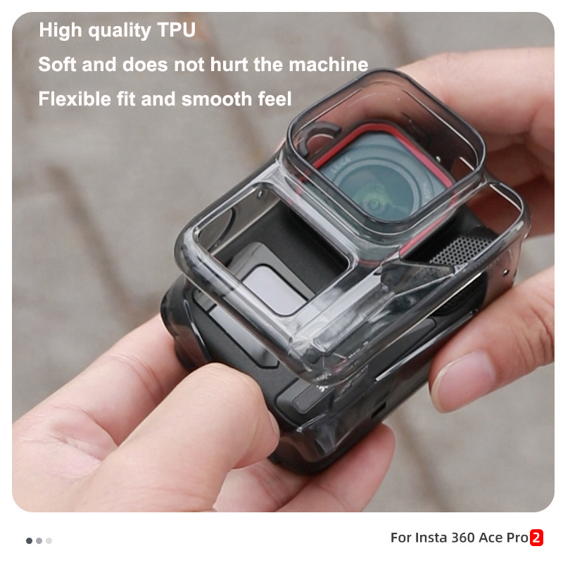 1. Fit for Insta360Ace Pro2: The tpu Protective Case Cover is precisely molded to ensure unobstructed access to buttons, microphone holes, and USB ports, while the quick-mount bracket easily attaches to the camera's base.