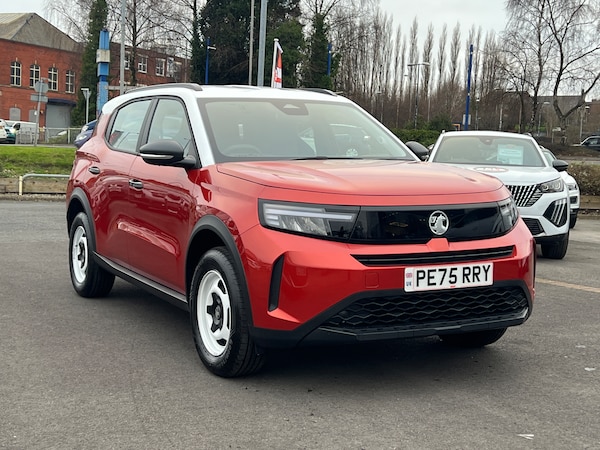 BRAND NEW MODEL, AVAILABLE NOW! Introducing the Vauxhall Frontera 83kW Design 44kWh 5dr Auto a smart, all-electric SUV designed for modern driving. The smooth automatic powertrain delivers quiet, effortless performance, while features including a rear view camera, satellite navigation, Apple CarPlay, and wireless smartphone charging keep you connected on the move. Automatic headlights and wipers, auto high beam, and active safety brake add extra confidence and safety on every journey. A practical, well-equipped Frontera ready for everyday life.