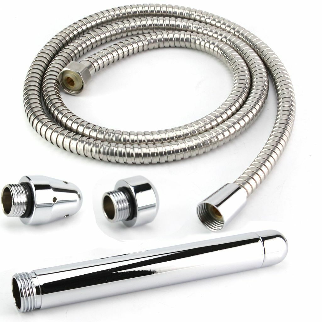 *One end of the hose screws into your shower, the other end is where you attach your choice of nozzle.