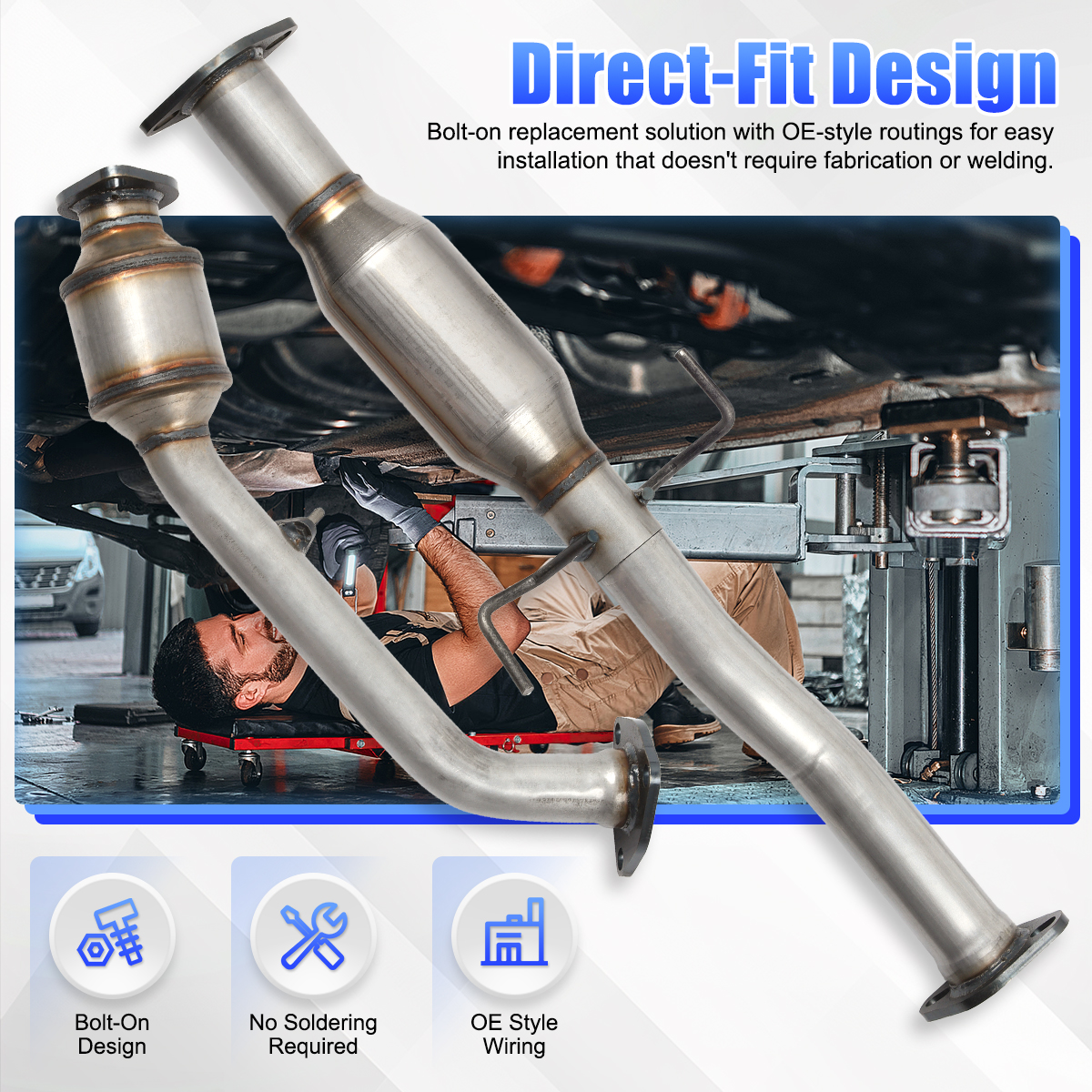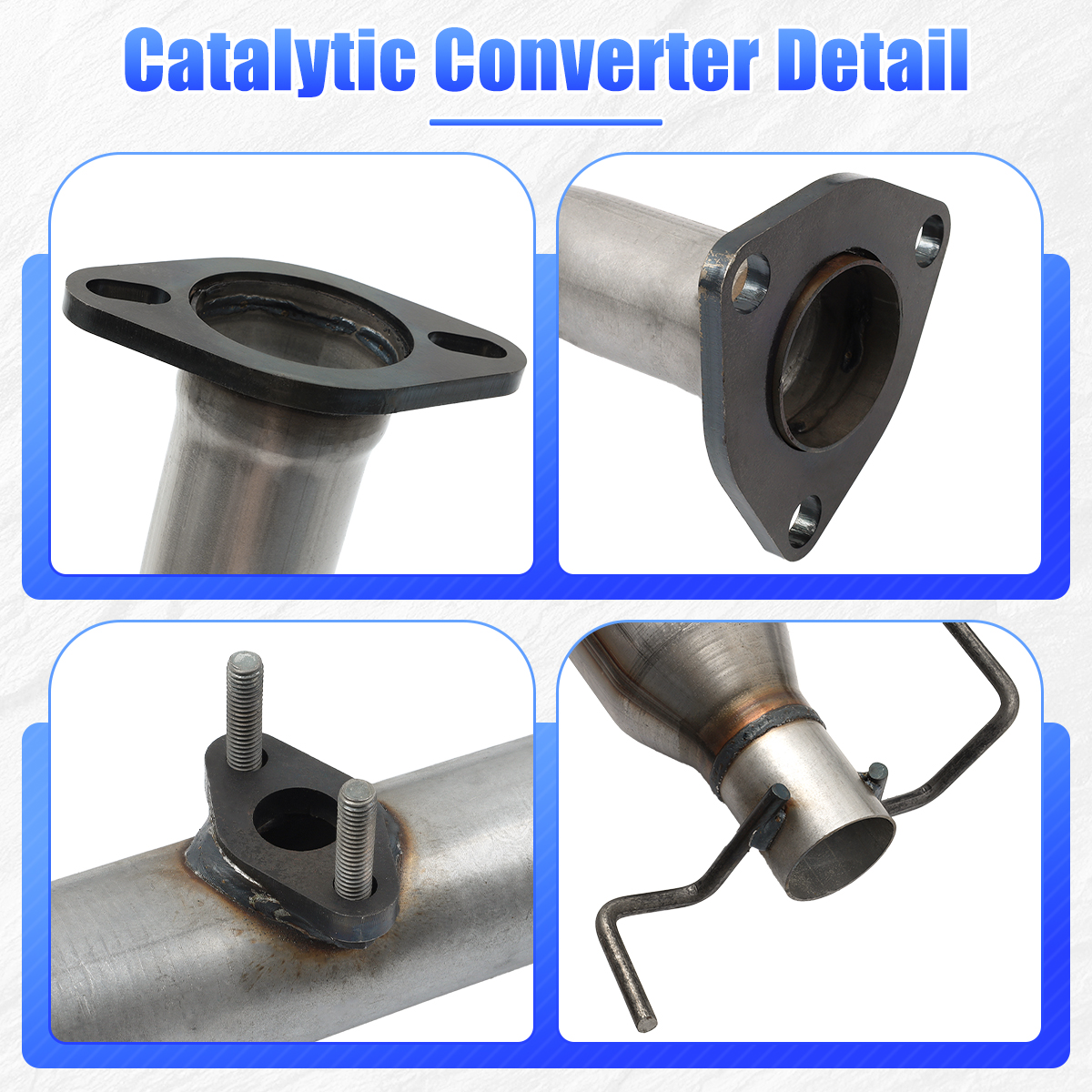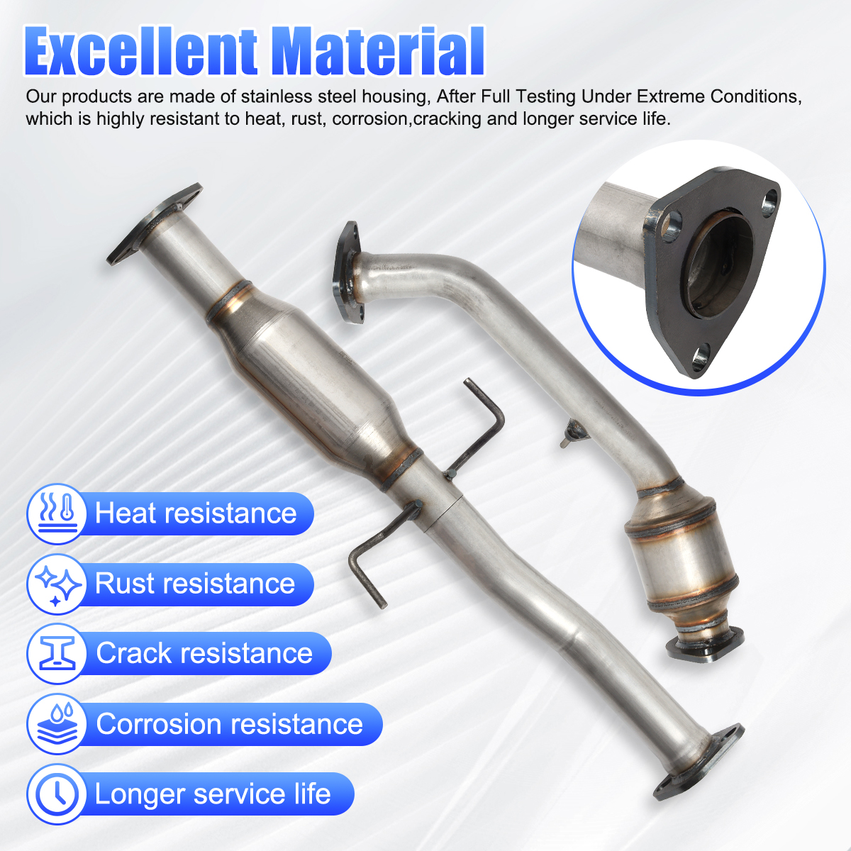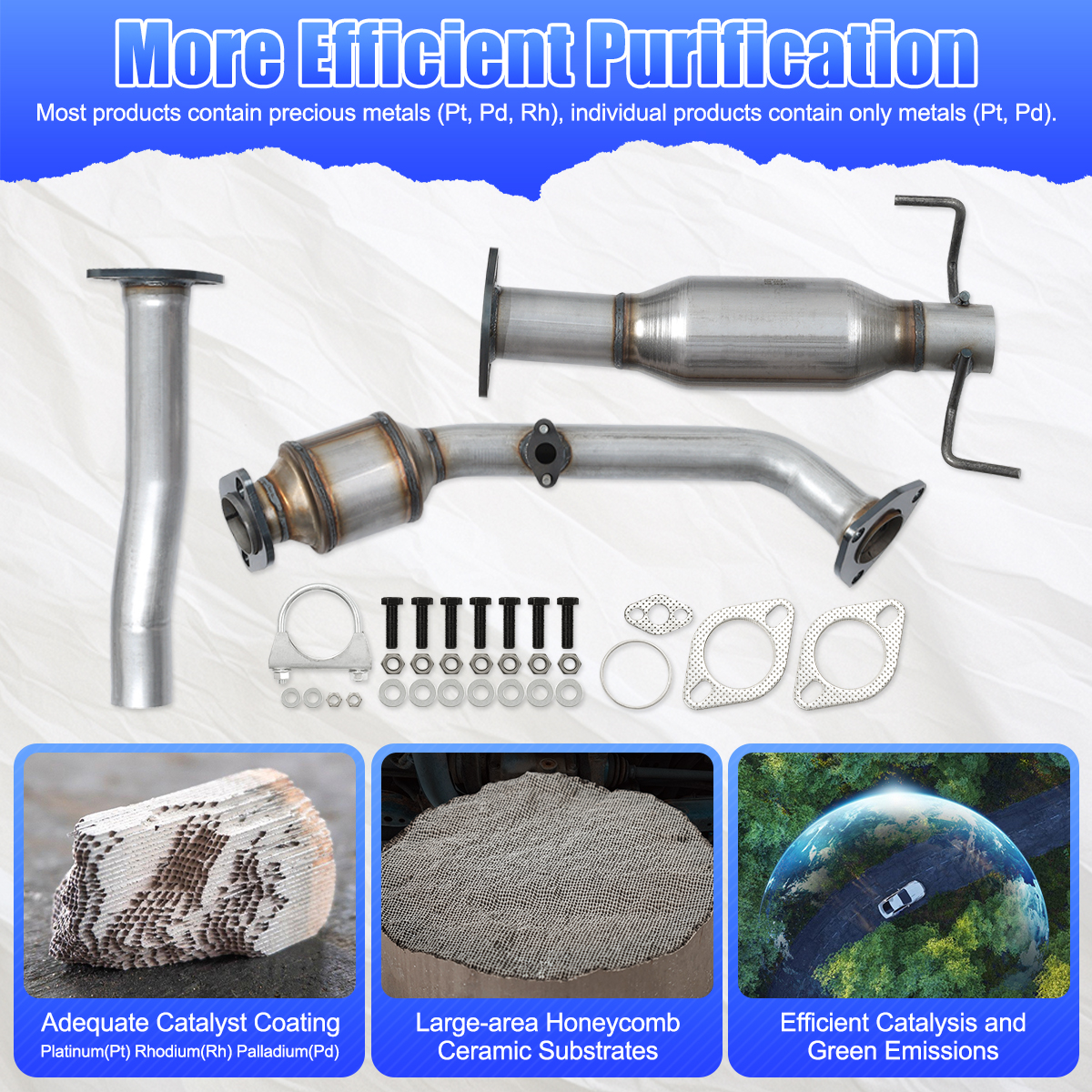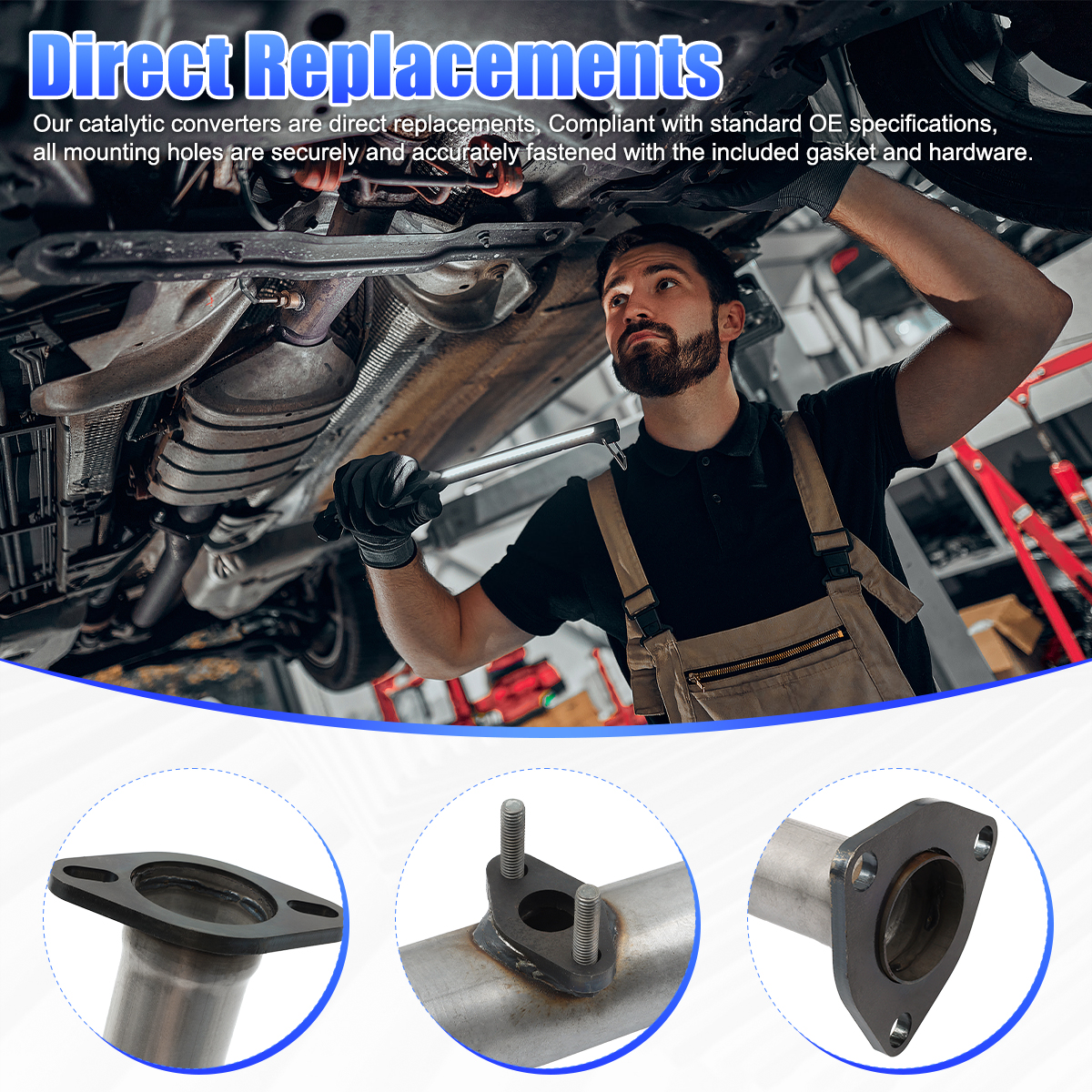 2.Our catalytic converters are direct replacements, Compliant with standard OE specifications, all mounting holes are securely and accurately fastened with the included gasket and hardware.