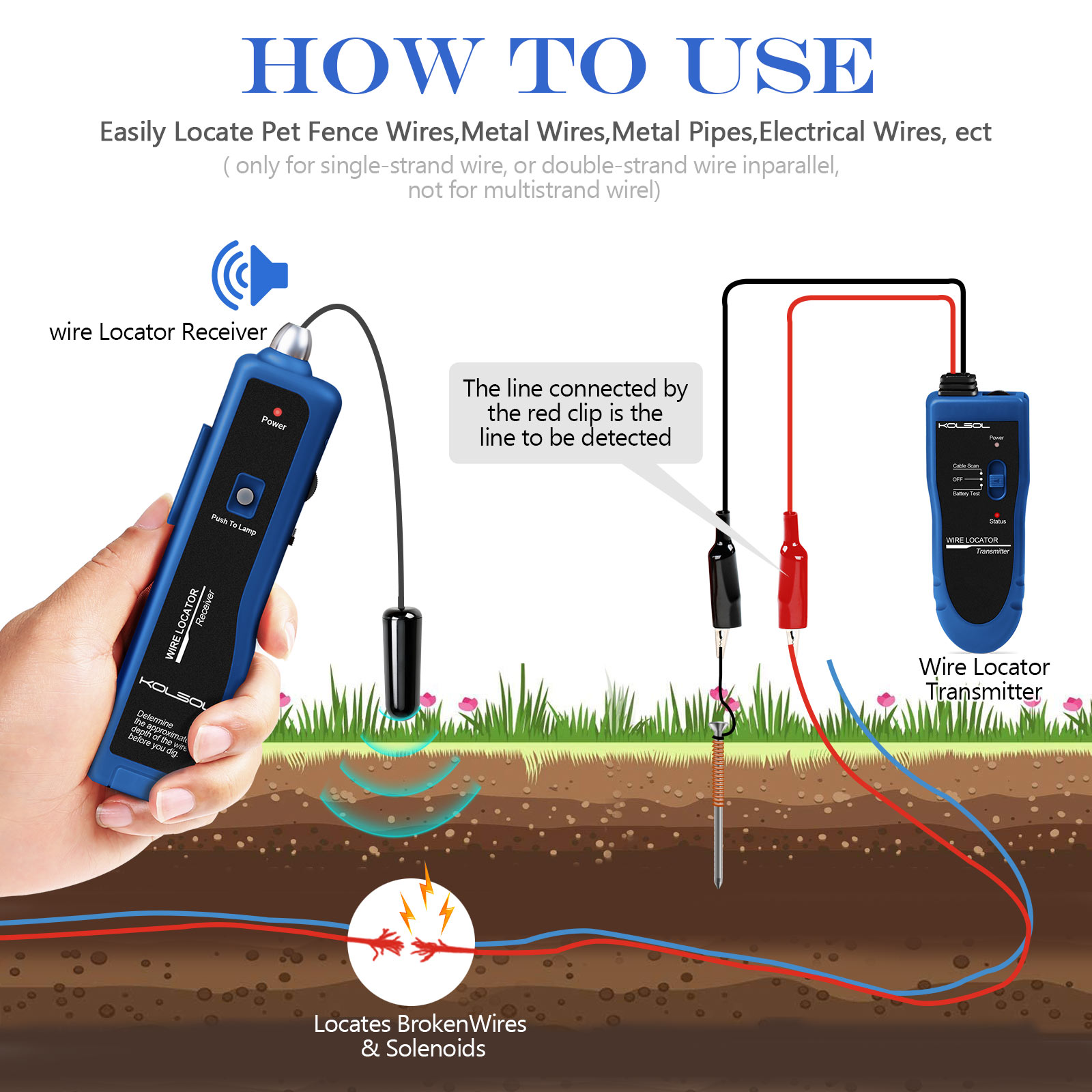 Easily Locate Pet Fence Wires, Metal Wires, Metal Pipes, Electrical Wires, ect ( only for single-strand wire, or double-strand wire in parallel, not for multistrand wire!!!)