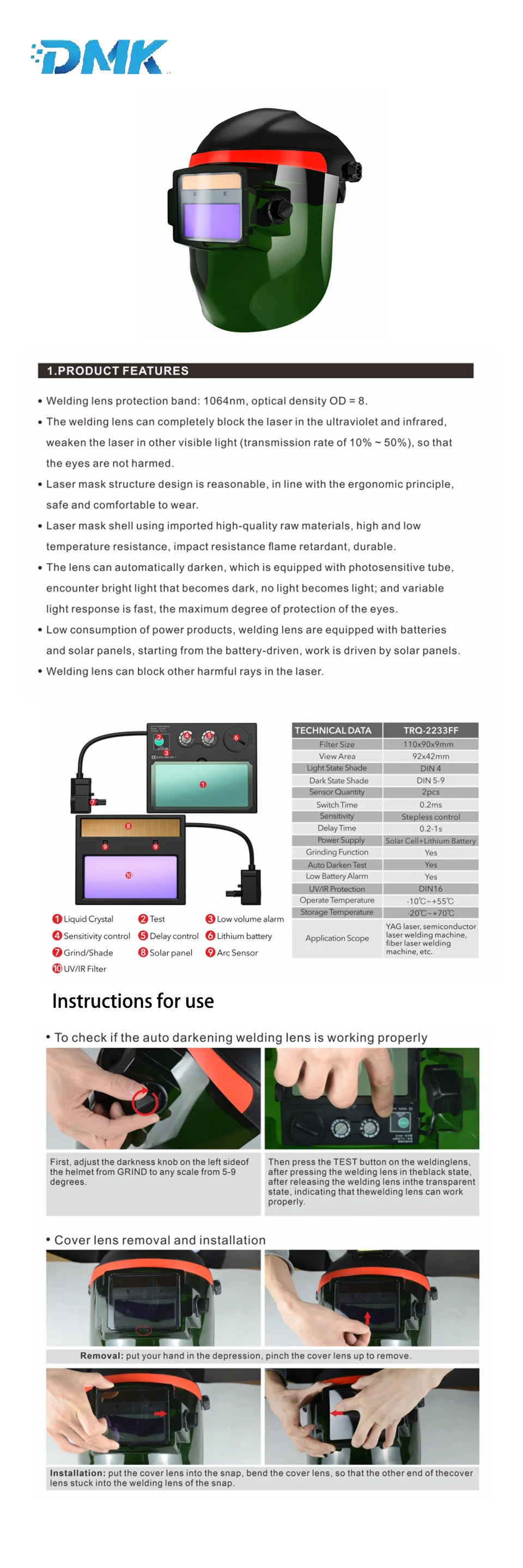 The DMK laser welding mask is built to last, withstanding the rigors of daily use in electrical power tool applications. The clear, anti-scratch lenses maintain their clarity and performance, ensuring that you can rely on them for every project. The product's design is not only functional but also stylish, making it an asset to any workspace. With the option to buy safety glass online, you can have this essential piece of equipment delivered straight to your door, ready to enhance your safety and efficiency in any laser-related task.
