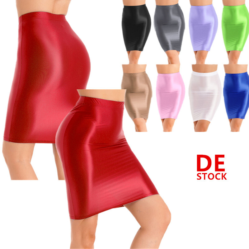 DE Damen Öl Rock Durchsichtig Bodycon Eng Röcke Hoch Taille Bleistiftröcke Party