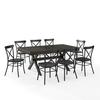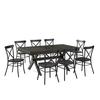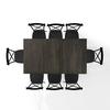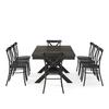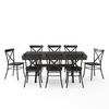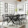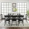 Bring modern farmhouse style to family gatherings with the Hayden Dining Set with Camille Chairs. Blending rustic wood and sturdy steel, this set features an extendable dinner table with an 18” leaf surrounded by six all-metal x-back dining chairs. Beautifully crafted with X-shaped legs, the table's trestle base makes this dining set a timeless centerpiece for your dining room..