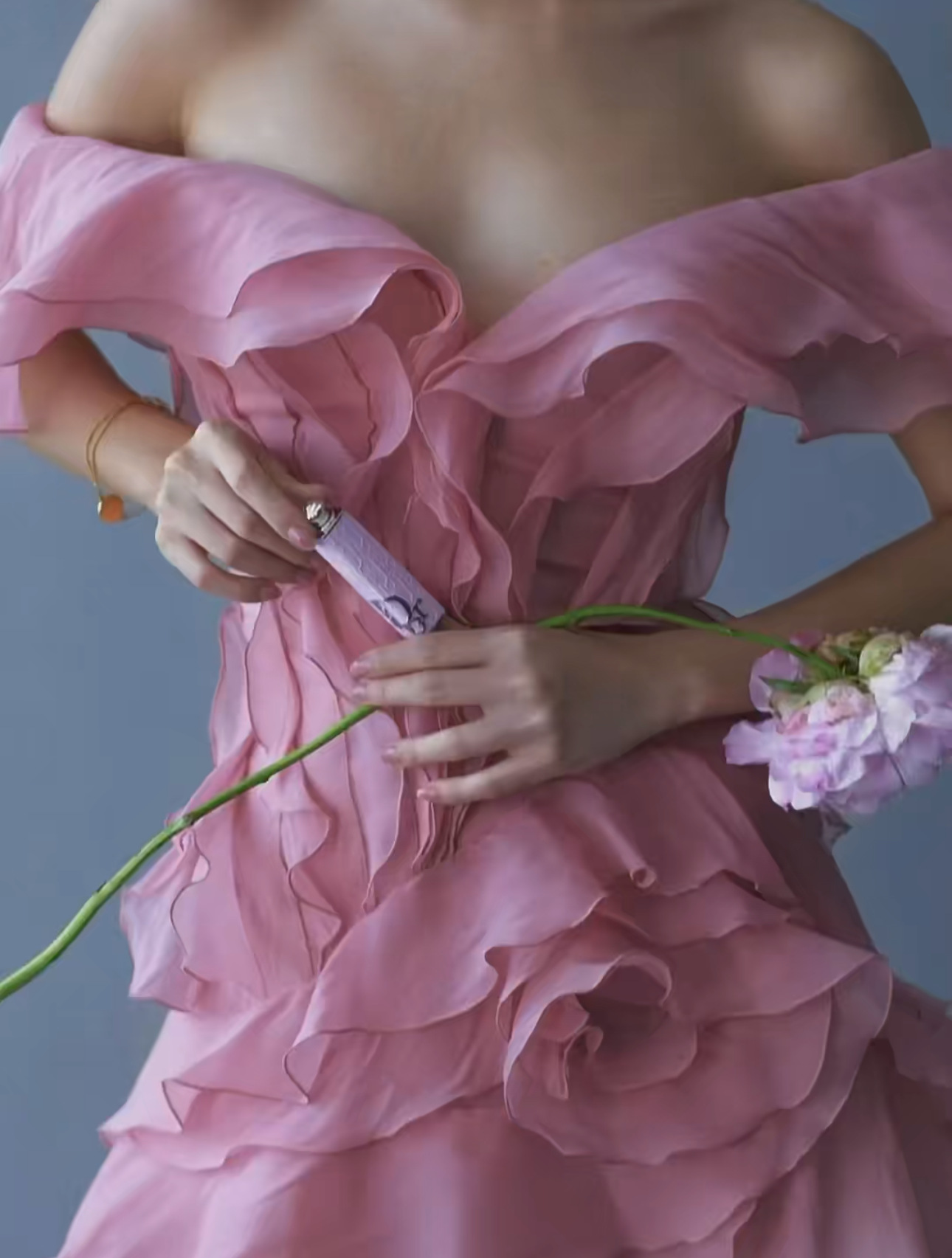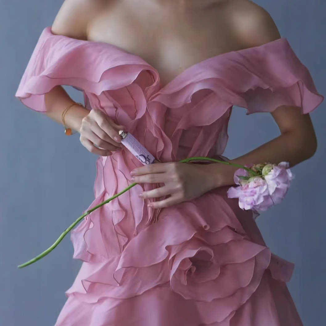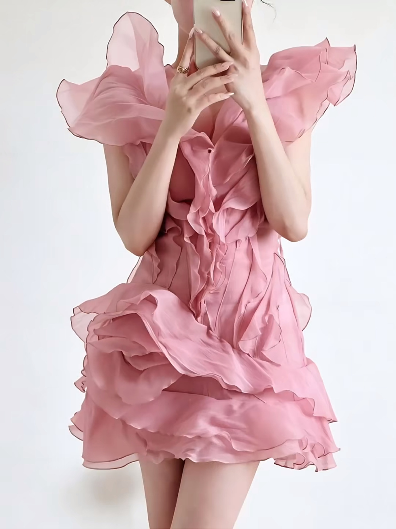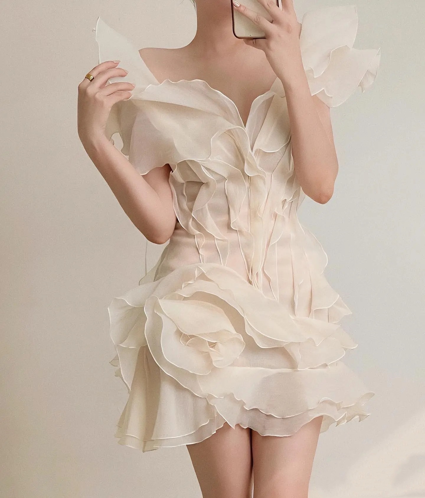 New Sexy Ladies Summer Lace Mesh V-neck Shoulder Dress Ruffled Edges Midi Dress