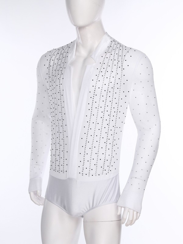 Made from a blend of polyester, nylon and spandex, it is stretchy and breathable, providing a flexible and comfortable fit for men during intense dance movements.