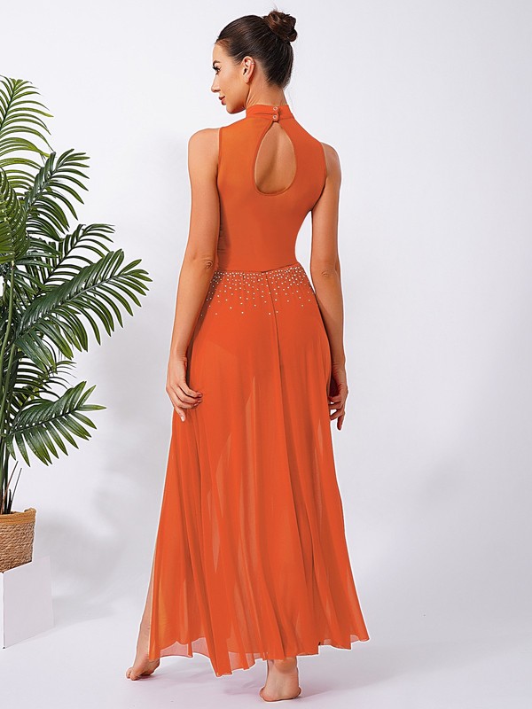 The sheer mesh and slit hem details bring a sense of elegance and fluidity, creating a dynamic and fashionable silhouette that is perfect for lyrical dance.