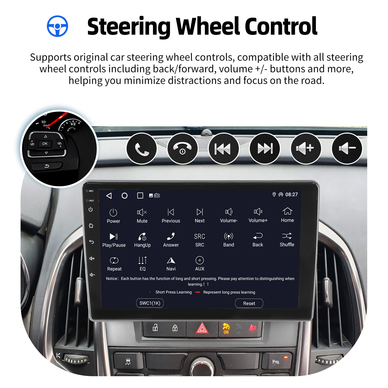 AHD Rear view camera input and steering wheel control: After connecting to the rear view camera. The radio automatically displays the reversing image as soon as you engage reverse gear. Make your daily reversing safer. Support AHD camera. Support original car steering wheel control (if your car doesn't support Canbus and YOU learn the steering wheel buttons) to make driving more convenient and safer.