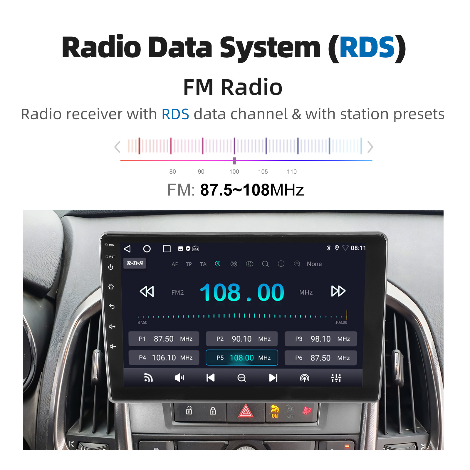 Radio Data System (RDS): RT, AF, TA provides all the FM channel information you need.