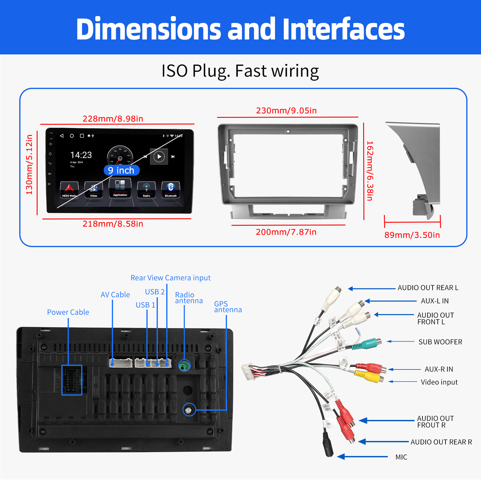 RDS/FM radio & Bluetooth & ASP Sound Setting: Supports Bluetooth 4.1, with built-in microphone so you can make hands-free calls while driving. Support access to phone book, music playback interface, etc. RDS supported. You can save 18 FM radio stations. Built-in ASP chip. Supports 32-band EQ setting, which can be adjusted according to your personal preference. Which is very similar to your original sound. 4 x 45W amplifier, surround sound and subwoofer output