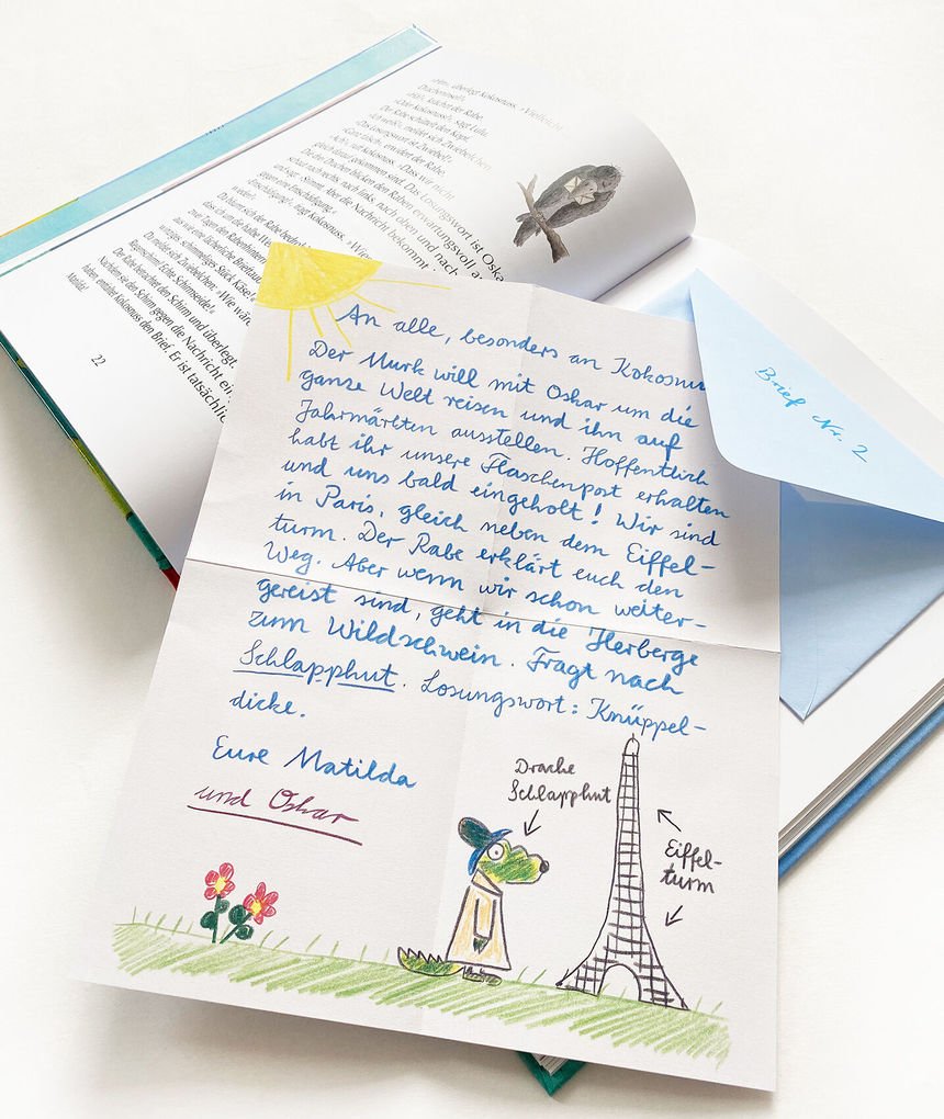In dieser Ausgabe im extra großen Vorleseformat ist in jedem Kapitel ein Briefumschlag eingeklebt - mit echten Briefen zum Herausnehmen! Bei diesem Titel handelt es sich um eine inhaltlich überarbeitete Neuausgabe von "Der kleine Drache Kokosnuss reist um die Welt". Ausstattung: Mit fbg. Illustrationen + integrierten Briefen; Mit echten Briefen