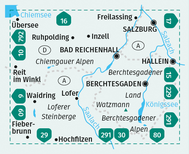 Ausstattung der Wanderkarte Berchtesgadener Land, Chiemgauer Alpen: