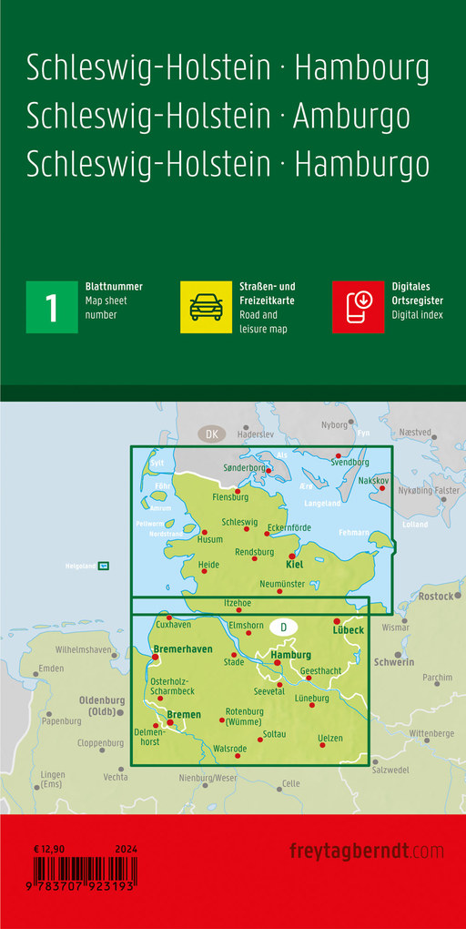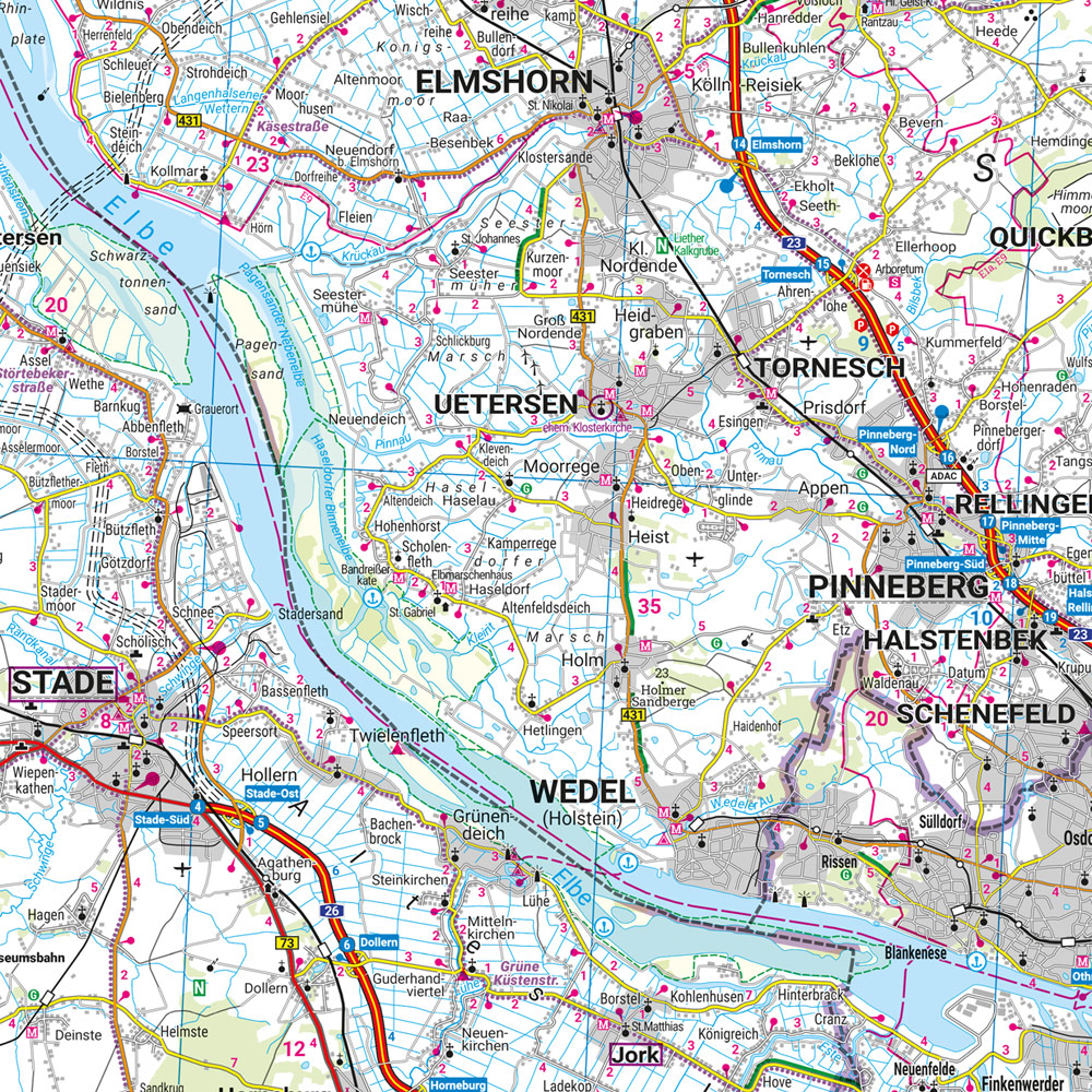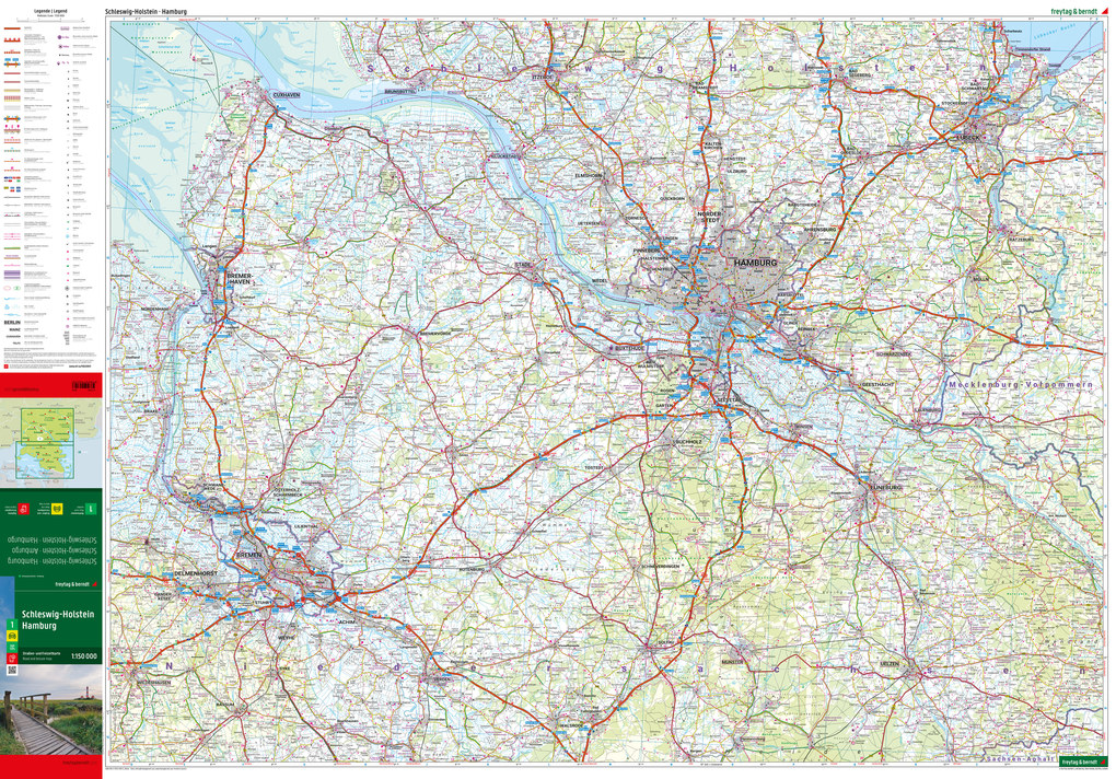 Straßenkarte Schleswig-Holstein - Hamburg im Maßstab 1:1 50. 000 finden sich Urlauber die mit Auto, Motorrad oder Wohnwagen unterwegs sind bestens zurecht. Das weit verzweigte Straßennetz ist exakt abgebildet, Entfernungen und viele Ausflugsziele sind in der Karte eingezeichnet.