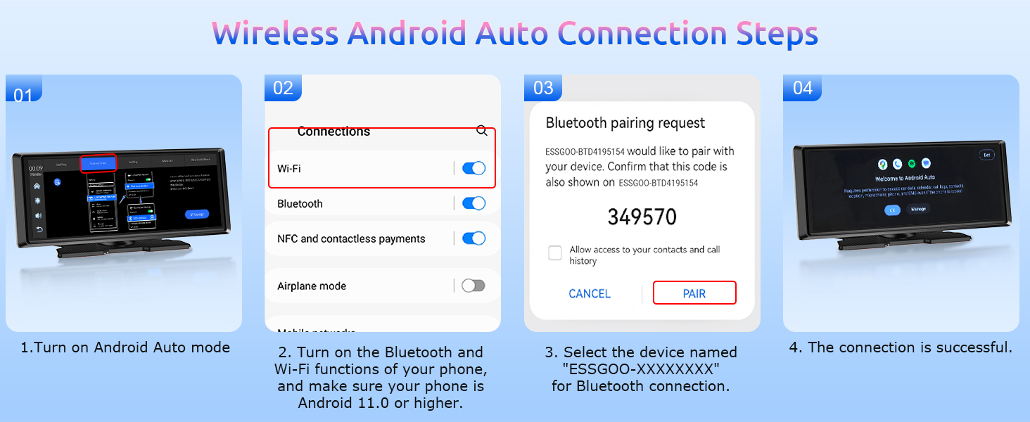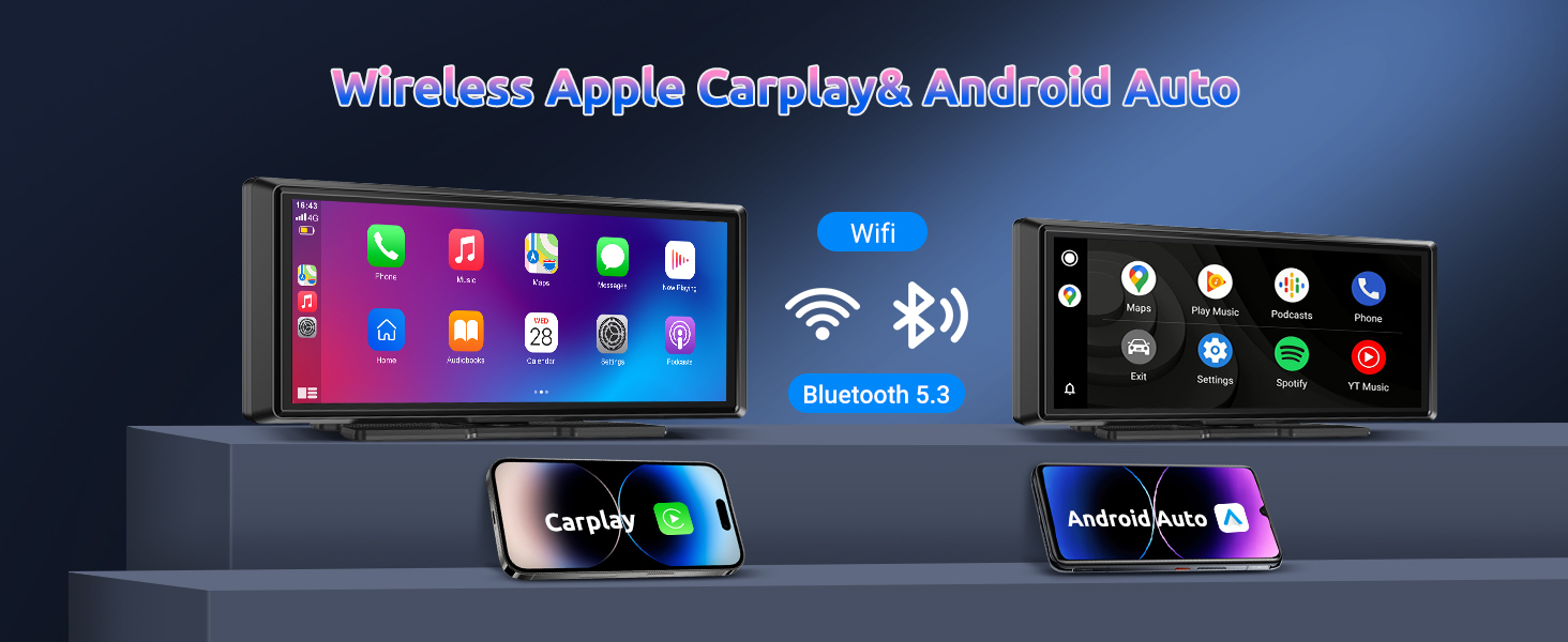 【Wireless Apple CarPlay and Android Auto】This car multimedia display is compatible with wireless Apple CarPlay and wireless Android Auto functions.