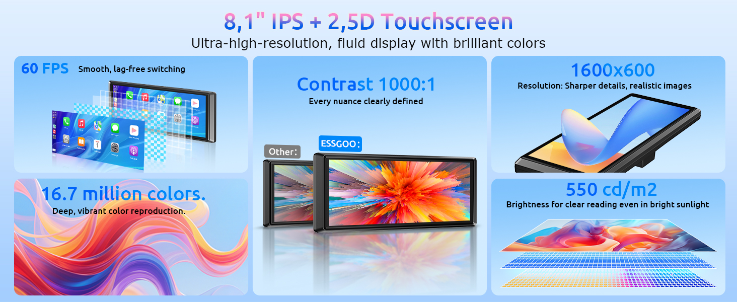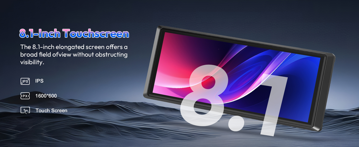 【HD IPS Touch Screen】8.1-inch car audio, equipped with a 1600*600P IPS screen, supports 1080P video playback. Enjoy functions such as maps, movies, etc.